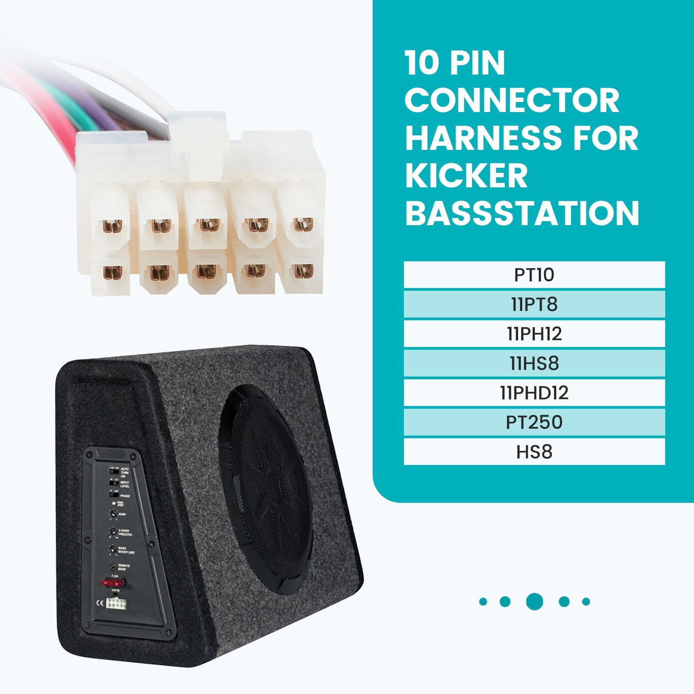 10 Pin Connector Harness For Kicker Bass Station Compatible With Pt10, 11Pt8, 11Ph12, 11Hs8, 11Phd12, Pt250, Hs8 Can Be Used To Connect The Function Of Power, Ground, Remote And Left & Right Speaker Input. It Is Ideal For Connecting Or Installing To A Kicker Subwoofer.