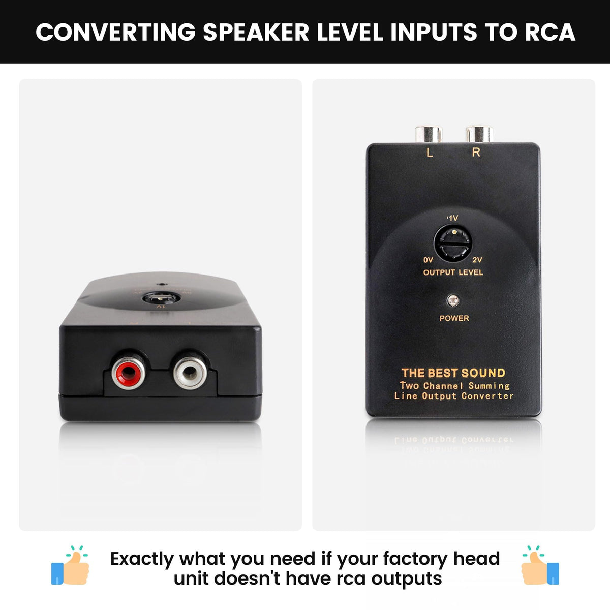 Q: What are the benefits of using the NuIth RCA line output converter?A: The NuIth RCA line output converter enhances sound quality by providing a clear audio signal to an external amplifier, facilitating the addition of a bass amp for subwoofers, and ensuring a faster, noise-free installation.