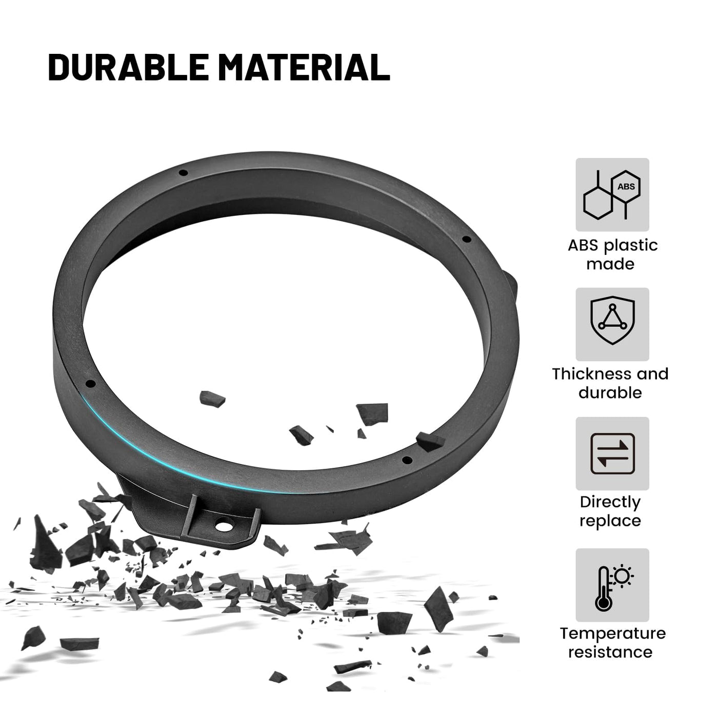 Q: What material is the speaker adapter made from?A: The RED WOLF speaker adapter is made of high-quality ABS plastic, which offers durable construction and prevents issues such as rotting that can occur with MDF or wood mounts.