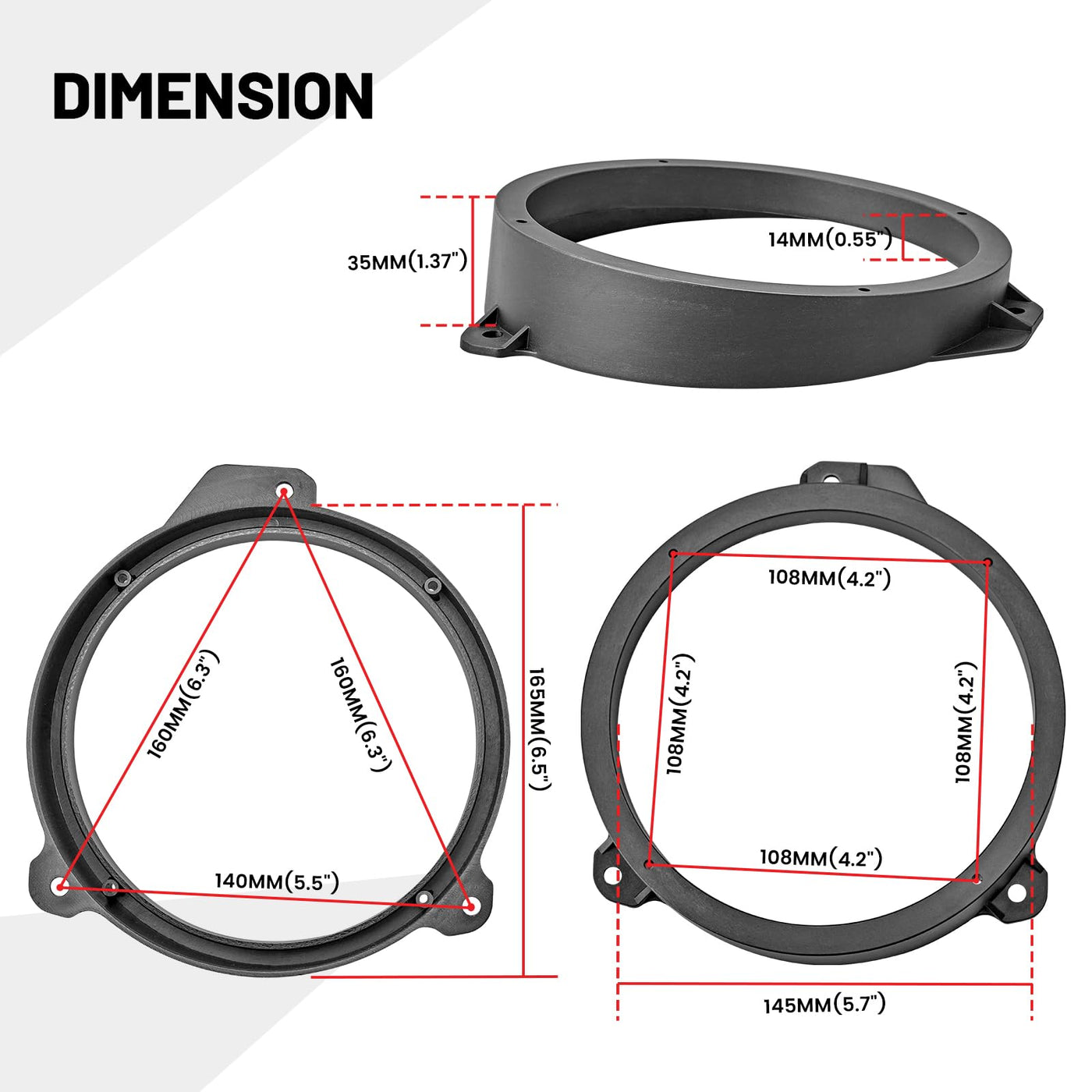 Q: What size aftermarket speakers can I use with this adapter?A: This adapter allows you to use aftermarket speakers sized 6 inches or 6.5 inches (165 mm), making it ideal for replacing factory speakers with enhanced audio options.