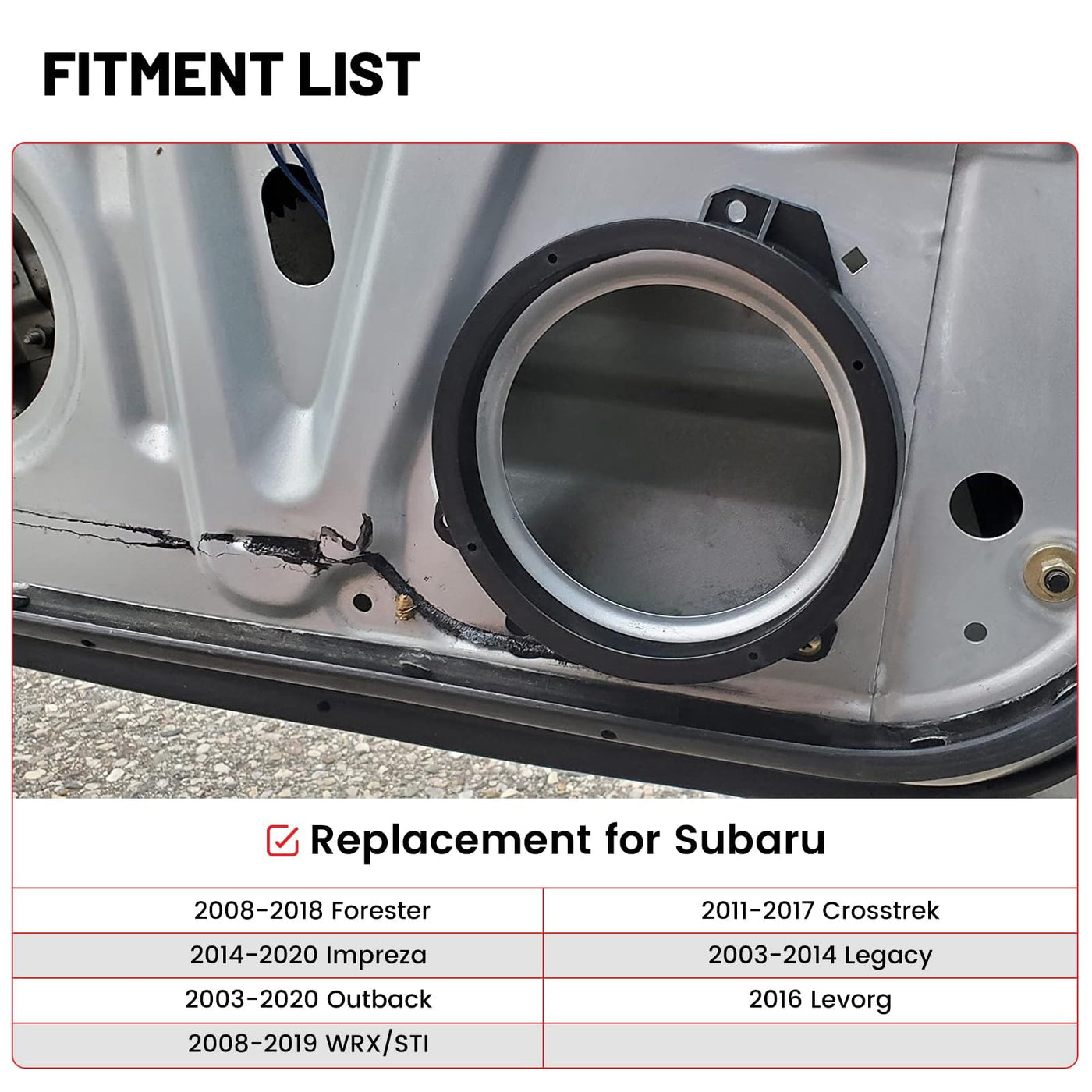 Specification Red Wolf: Pjso02-02 Color: Black Quantity: 1 Pair Compatible Aftermarket Speakers Size: 6'' Or 6.5'' Fit For Subaru 2008-2018 Forester, 2014-2020 Impreza, 2003-2020 Outback, 2008-2019 Wrx/Sti, 2011-2017 Crosstrek, 2003-2014 Legacy, 2016 Levorg. Genuine Subaru Part Number: 86301Fg002