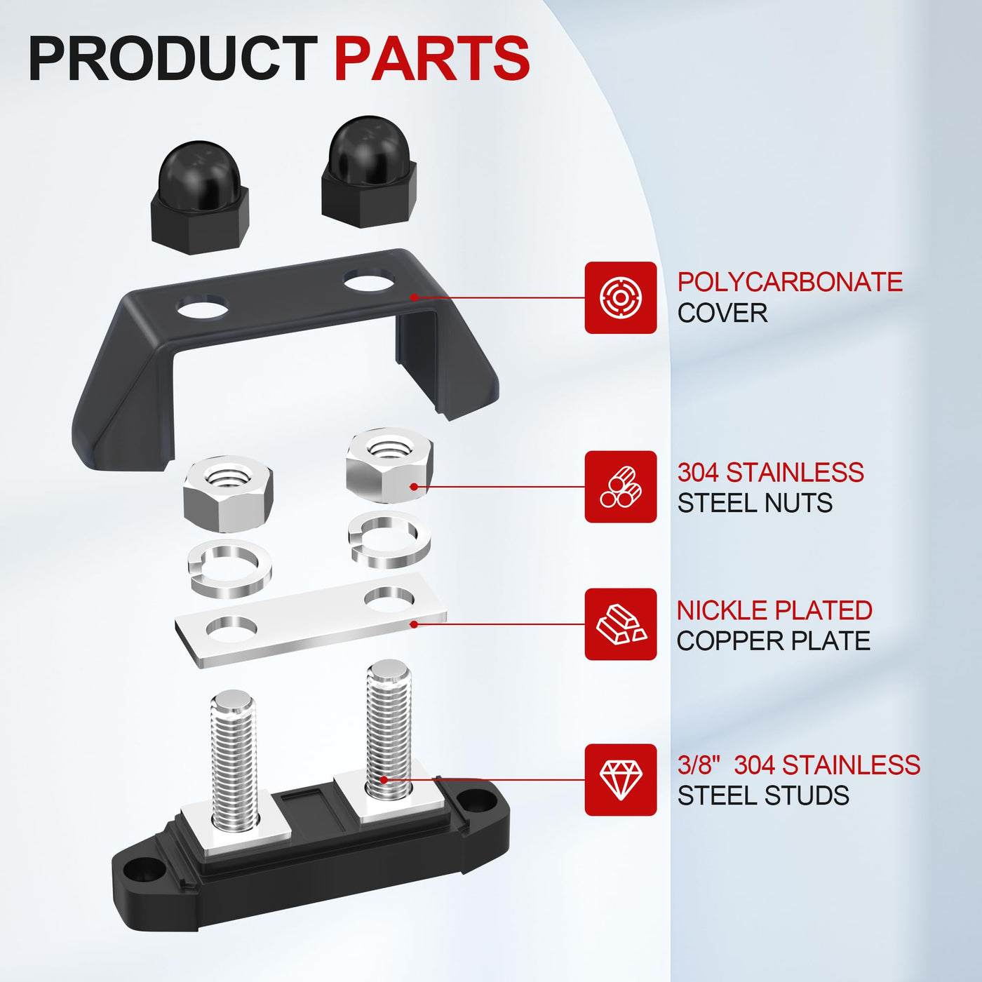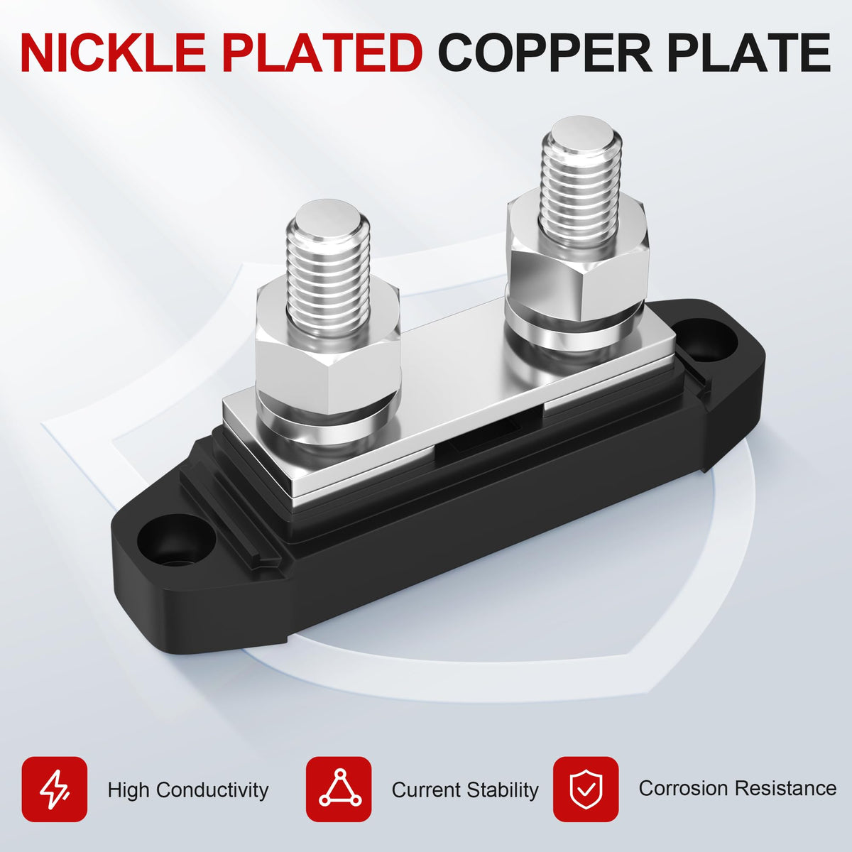 Q: What materials are used in the construction of the RVBOATPAT Bus Bar?A: The RVBOATPAT Bus Bar features studs made from 304 stainless steel, which provides excellent corrosion resistance, ensuring durability and longevity.