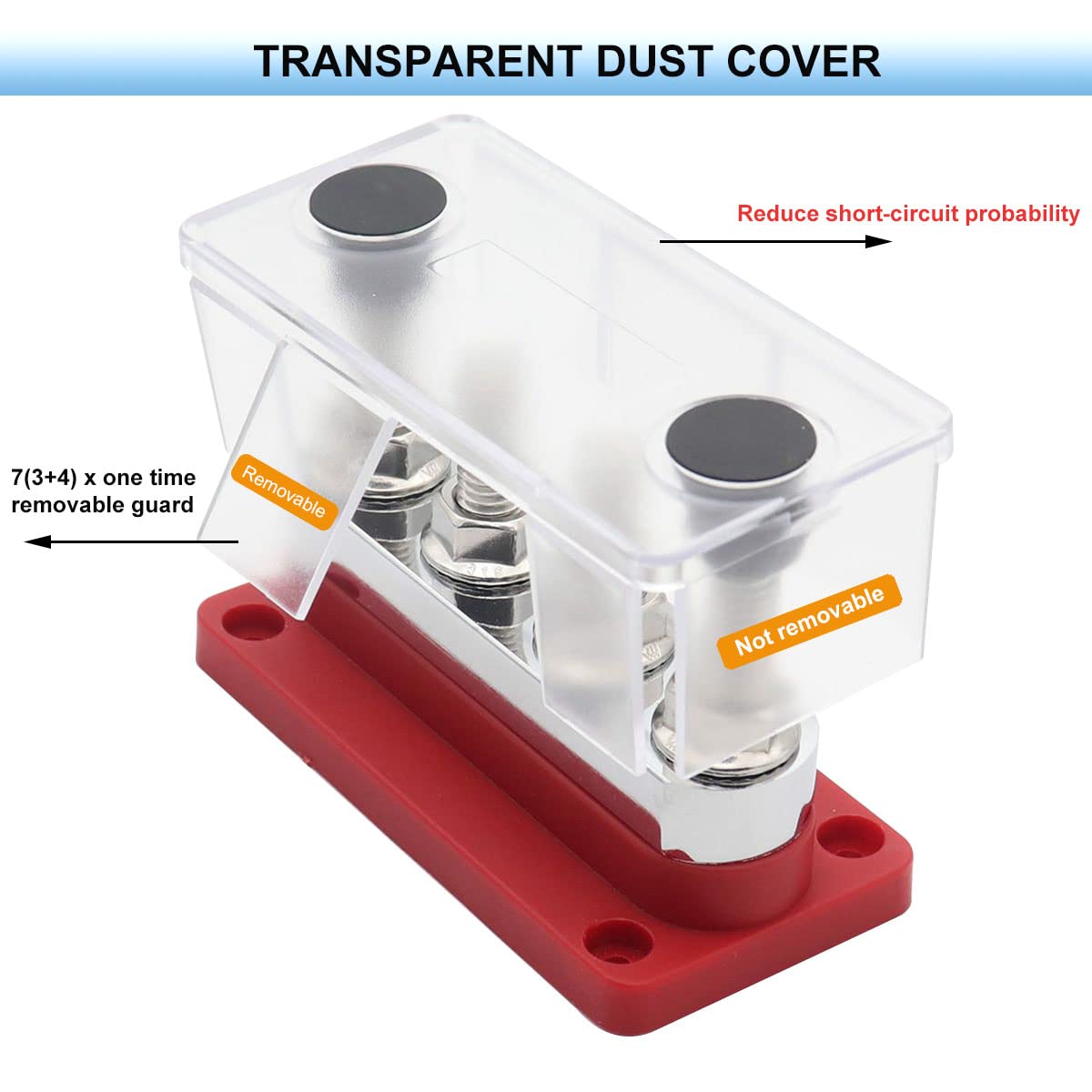 Features: Heavy-Duty Bus Bars Provide A Robust Means Connect (Bus) Together, Great For Multiple Batteries Wiring Configurations. 600 Amp Busbar With 4 X 3/8'' Terminal Studs Offer Unrivaled Flexibility To Meet The Requirements Of Any Installation, Saves Significant Cost And Space. Widely Used For Car, Pickup, Trailer, Rv, Motorcycles, Recreational Vehicles, Truck, Caravans, Yacht, Boat, Etc. Easy To Install. Nickel-Plated Copper Busbar Contacts Plate Has Low Resistance, Maximum Conductivity And Anti-Corrosion-Protection. High Temperature Resistance, Abrasion Resistance, And More Safer In Use. Flame-Retardant Nylon Base Has Best Mechanical Strength And Durability. Stainless Steel Studs And Screws Are Anti-Rust And Anti-Corrosion, Suitable For Most Of Environments, Such As Marine, Car, Solar Etc. Specification: Base& Cover Material: Nylon,Glass Fiber Reinforc And Pc Bus Material: Plate With Nickel Copper. Max Operating Voltage: 48V Dc Continuous Rating: 600A Dimensions(Lxwxh): 4.05X 1.96 X 2.67Inch( 103X 50X 68Mm) Teminal Stud Size: 4 X 3/8''( M10) Package Include: 1X 600A Bus Bar With Cover( Red)