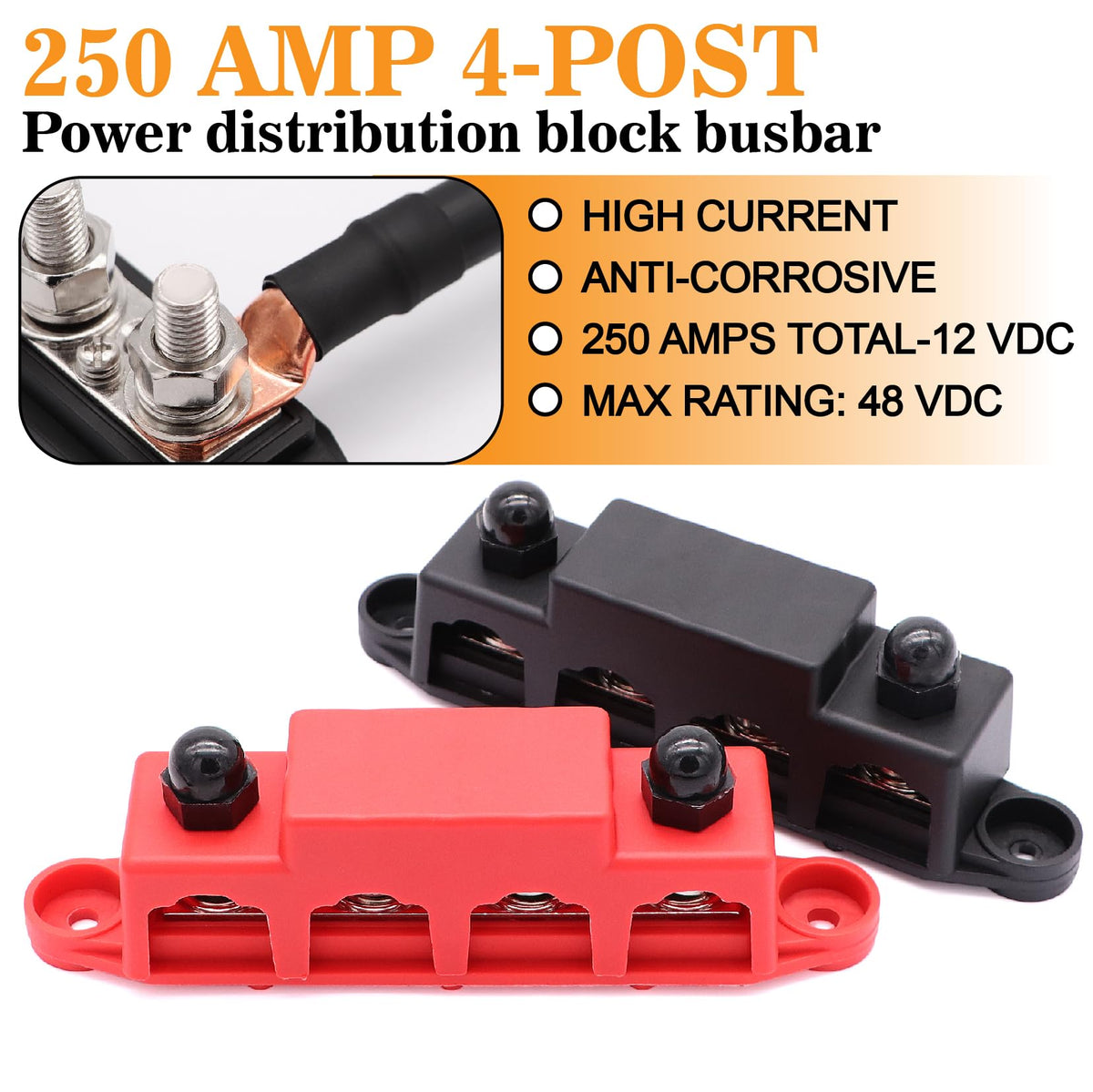 The Power Distribution Block Holds Wide Cables Securely To Keep The Wires Neat And Organized. 12V Power Distribution Block, Includes 4 X 3/8'' Stud Terminals And 3 X #8 Screw Terminals, Rated 250A When Work With 12V Dc Supplier, Each Battery Distribution Block Will Come With A Protect Cover And 2 Nuts. What Is Included In Package: 1 X Positive Power Distribution Block 1 X Ground Power Distribution Block 4 X Mounting Screws 4Pcs Awg 1/0-3/8'' Battery Lugs 10Pcs Awg 4-3/8'' Battery Lugs 14Pcs 3:1 Adhesive Lined Heat Shrink Tube