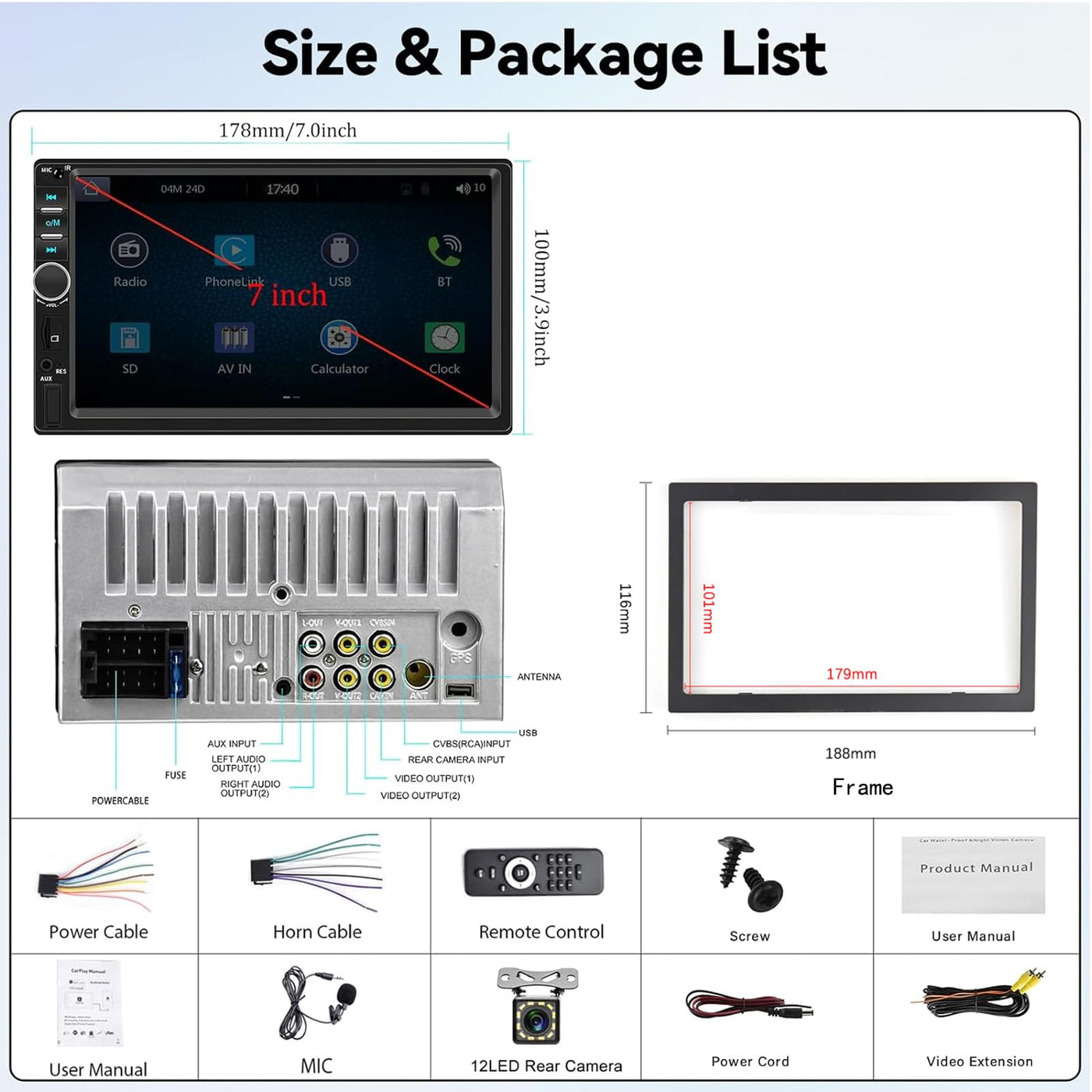 Universal Double Din Car Stereo 7 Inch Touchscreen With Carplay Android Auto Mirror Link Fm Receiver Multimedia Player Head Unit