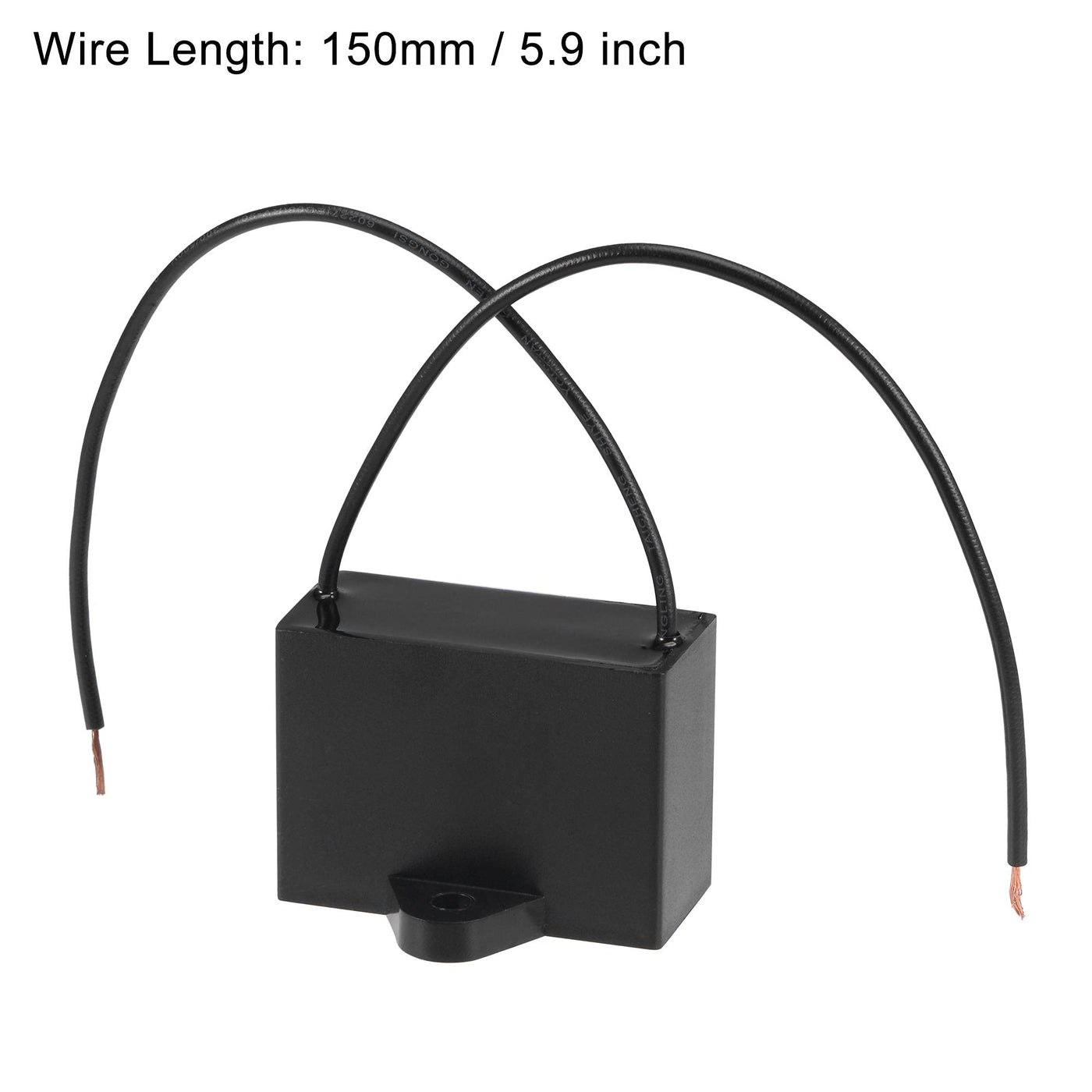 Features:This Cbb61 Run Capacitor Has Low Loss, Excellent Electrical Performance And Long Service Life.The Cbb61 Capacitor Is Widely Used For Ceiling Fan, Wall Fan, Stand Fan, Industrial Fan, Range Hood Fan, Air Exchange Fan, Water Pump, Motor, Generator, Etc.Note:This Capacitor Has No Positive And Negative Poles, It Can Be Wired At Will.If The Ceiling Fan Works Slowing Down Or Cannot Work Or Cannot Work At Different Speeds As It Used To, Please Check The Cbb61 Ceiling Fan Capacitor First. The Capacitor May Be Burnt Out Or Weak, You Need To Replace It With A New One.Specifications:Model: Cbb61Material: Polypropylene Film, Plastic Shelllead End: 2 Wirestolerance: &Plusmn;5%Rated Capacity: 15Ufrated Voltage: 250V Acrated Frequency: 50/60Hzclimatic Category: 40/85/21Wire Length: 150Mm / 5.9 Inchhole Diameter: 4.5Mm / 0.2 Inchshell Size: 47X34X22Mm / 1.9X1.3X0.9 Inchwire Color: Blackpackage Includes:1 X Cbb61 Capacitor