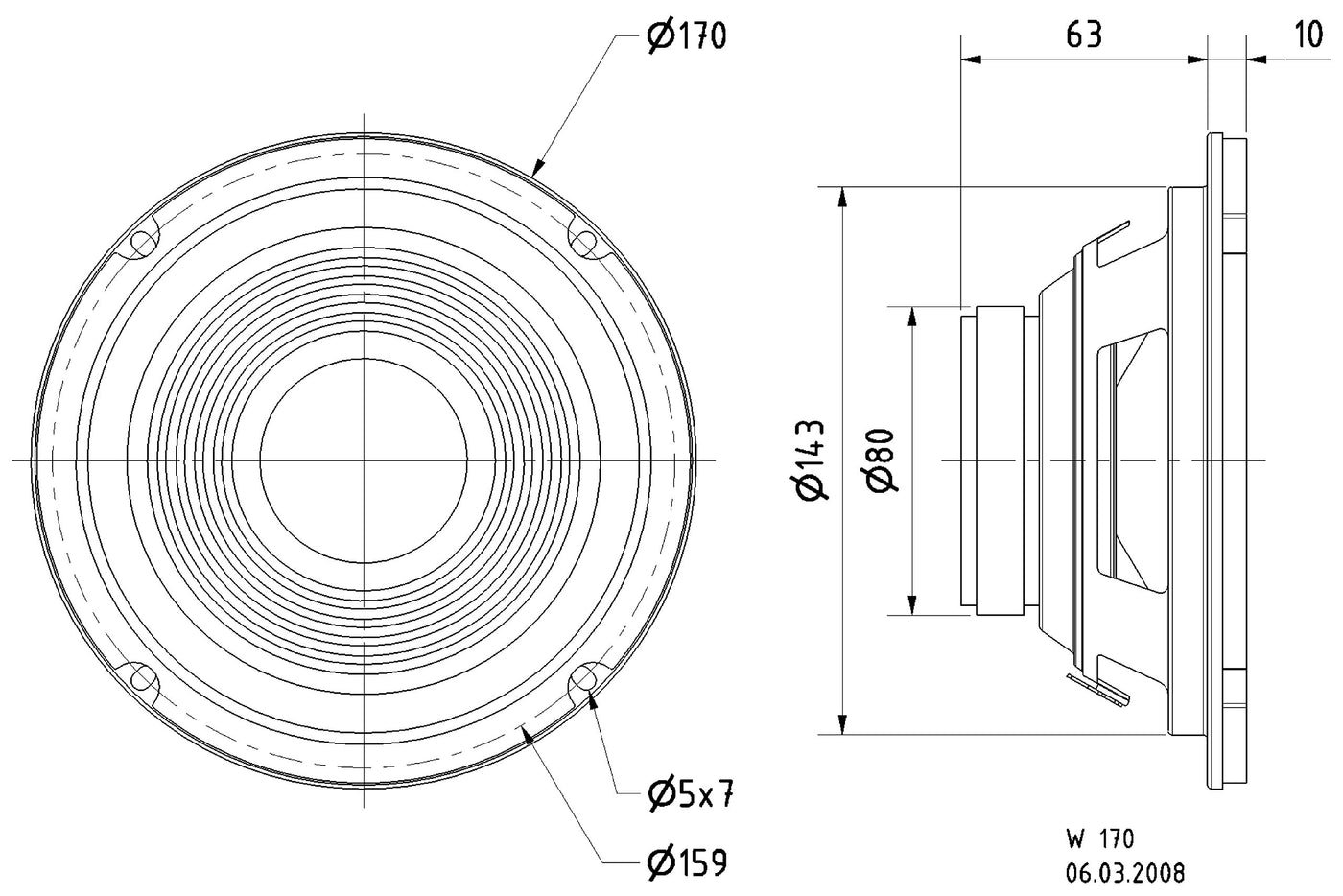 Q: What are the key features of the Visaton 9063 W170 woofer?A: The Visaton 9063 W170 woofer features a foam surround and ribbed paper cone that provide a classic sound quality. It has a maximum linear excursion of 2.0 mm and an excursion limit of ±7.5 mm, making it a reliable choice for sealed cabinet speakers.