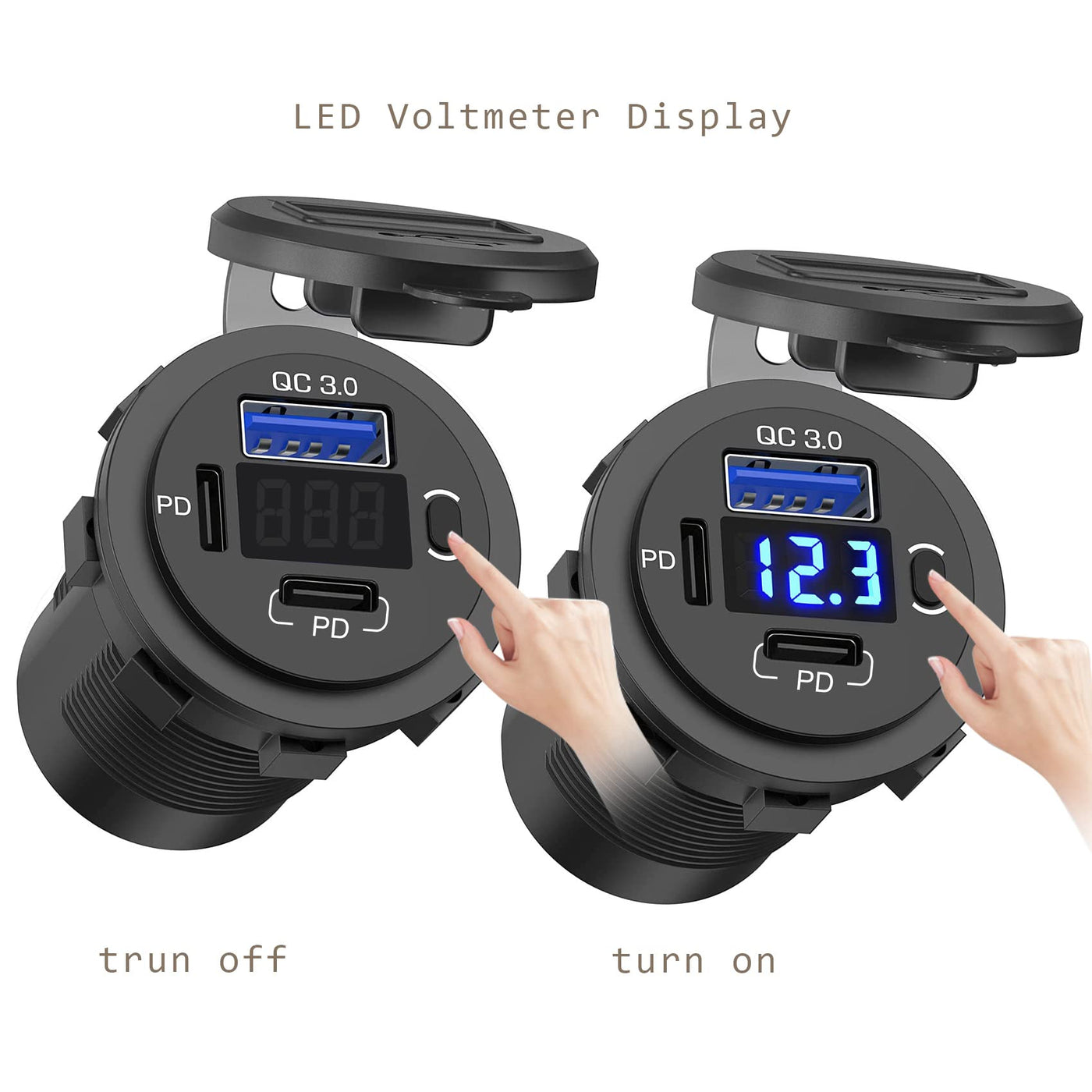 12V Usb Outlet, Dual Usb C Car Charger Socket & Quick Charge 3.0 Port With Voltmeter And Power Switch For Car Boat Marine Truck