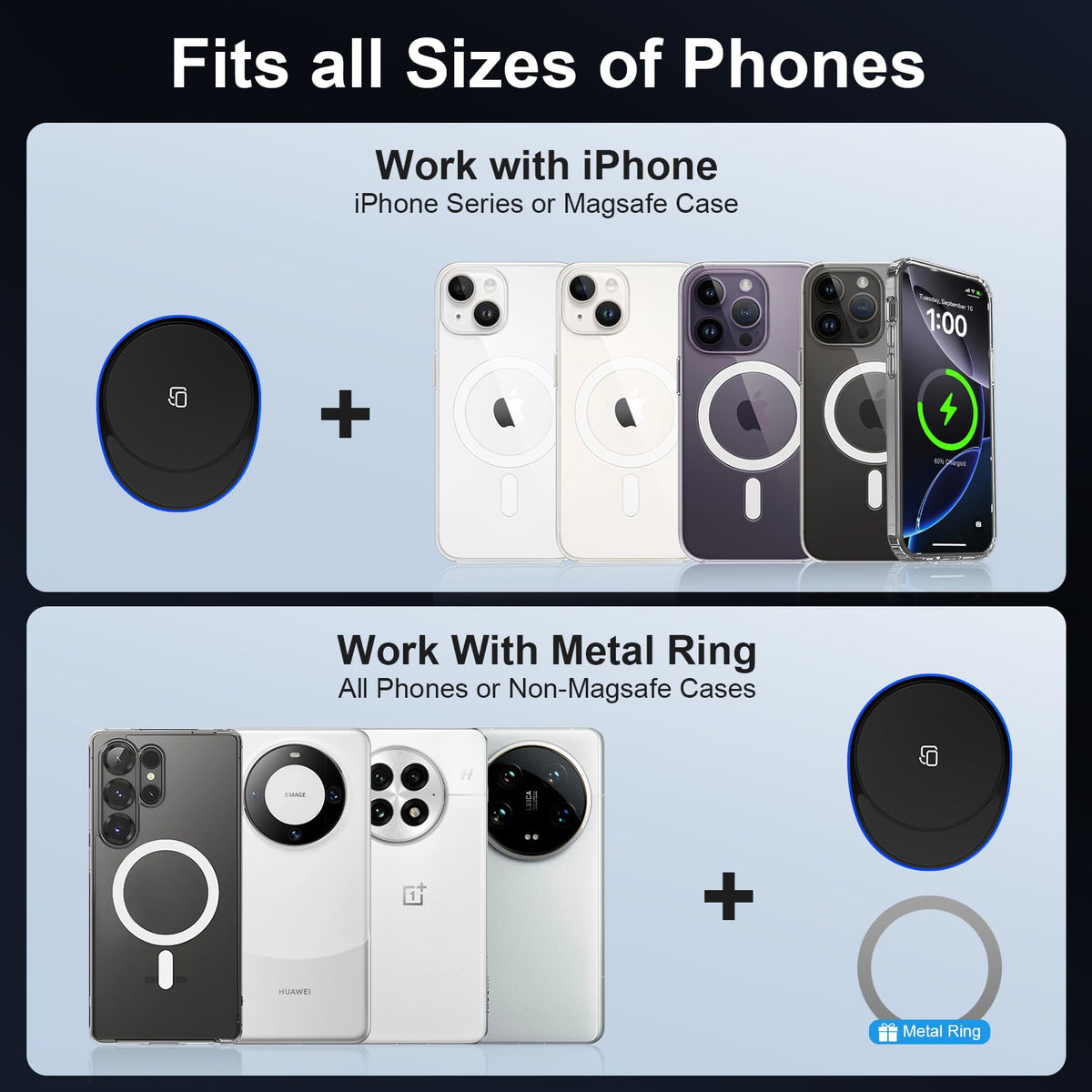 15W Magnetic Wireless Car Charger, Magsafe Car Mount Charger Fast Air Vent Car Phone Holder Charge R For Iphone 16E 16 Pro 16 15