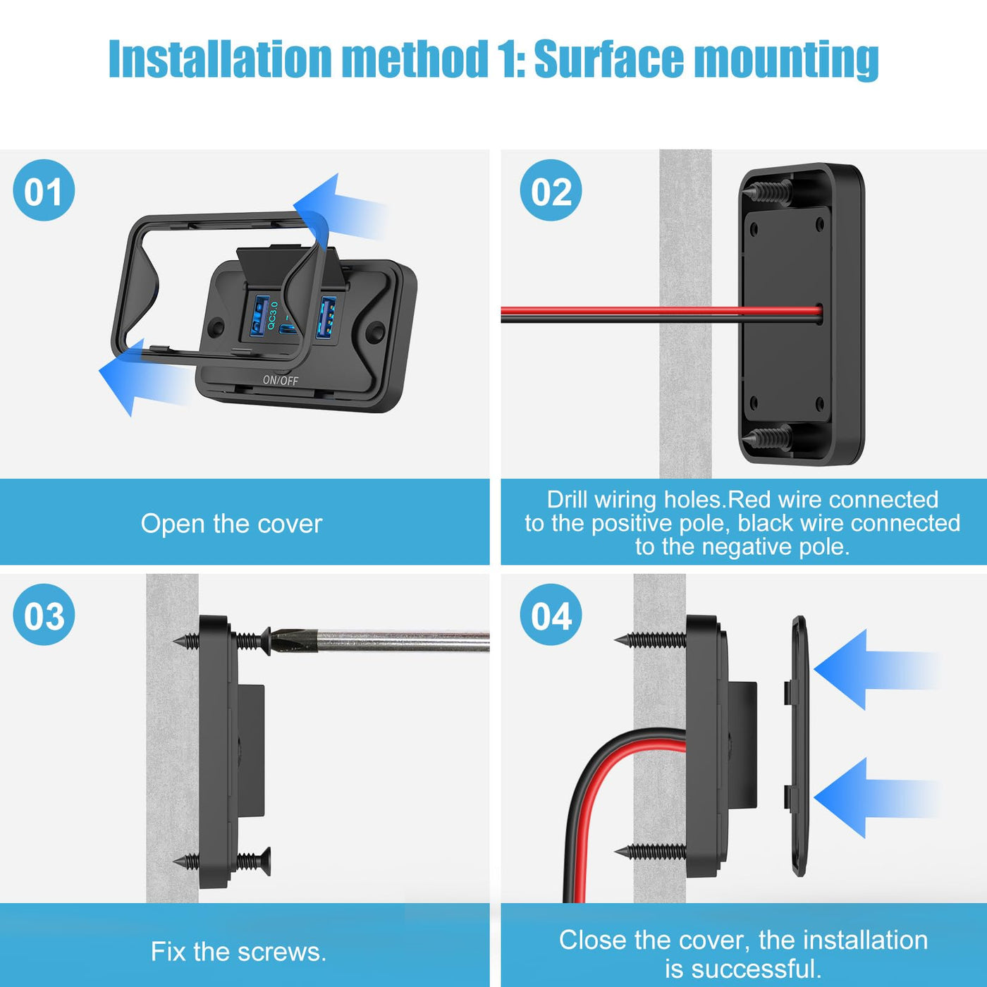 4 Port 12V Usb Outlet Panel Wall Mount If Your Car Or Boat Dashboard Doesn'T Have Enough Room To Install A Long Car Charger, This 12V Usb Socket Will Be A Great Choice For You Perfect Pd Port Dual Pd Port Top Charges At 60W (30W+30W) Compatible With All Phone Devices And Up To 30W Output, Surprisingly .Super Fast Charge Samsung S22 Series 12V Usb Socket With Flip-Up Waterproof Cover