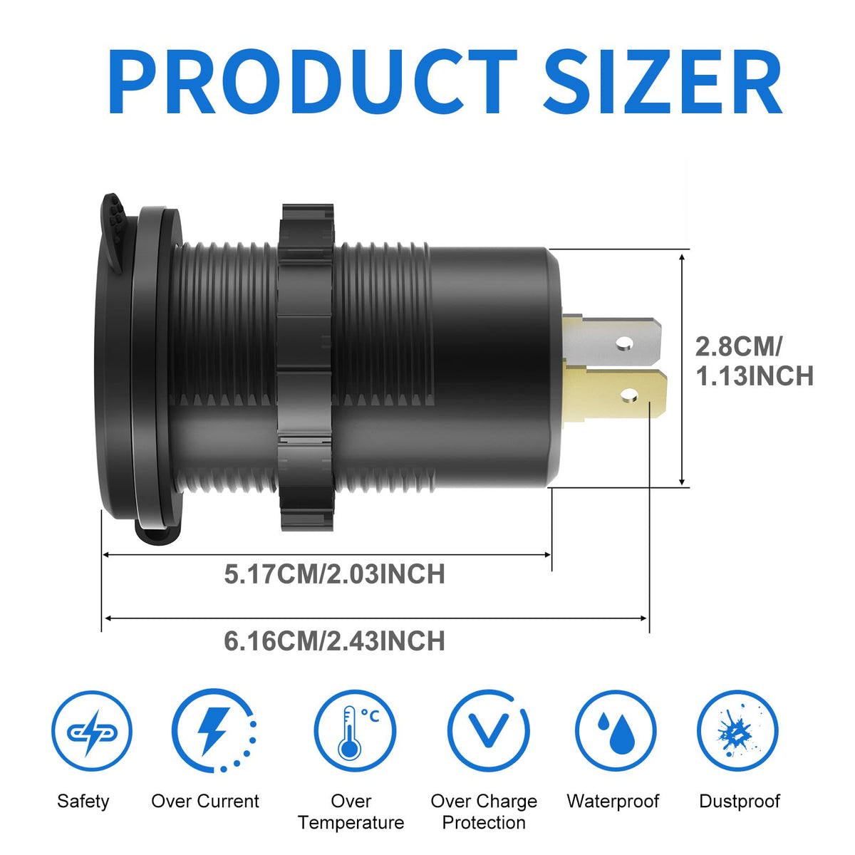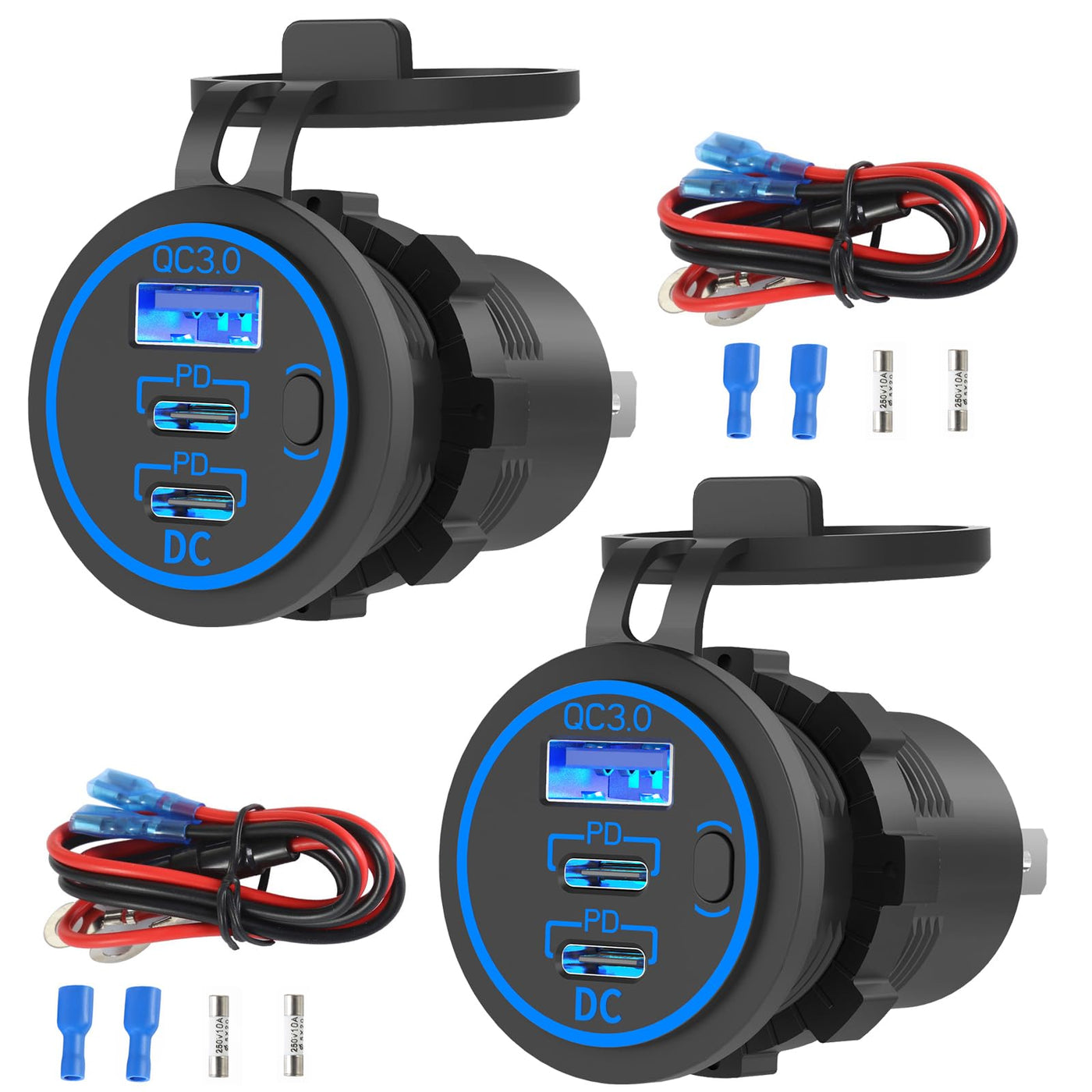 Dual 30W Pd3.0 Usb-C Outlets & 18W Quick Charge 3.0 Port This 12V Usb Charger Socket Is Longer Than Other Sockets And Is Equipped With A Smart Chip In Each Port. Three Ports Can Fast-Charge Simultaneously Without Affecting One Another. For A 12V/24V Car, The Total Power Can Reach 78W. Wide Compatibility This 12-Volt Power Outlet Comes With A Removable Waterproof Cover, Making It Waterproof And Dust-Proof, And Suitable For Use Even In Harsh Environments. It'S Compatible With All 12V-24V Vehicles, Including Marine, Atv, Motorcycle, Truck, Golf Cart, Rv, Boat, Suv, And More. About Wiring: Connect The + To Power Positive Pole, And Connect - To Ground Or Negative Pole. For Vehicle, Its Better To Choose Power Positive Pole From Acc, Than Batt+; For Motorcycle, Its Better To Get Power From Key Switch.