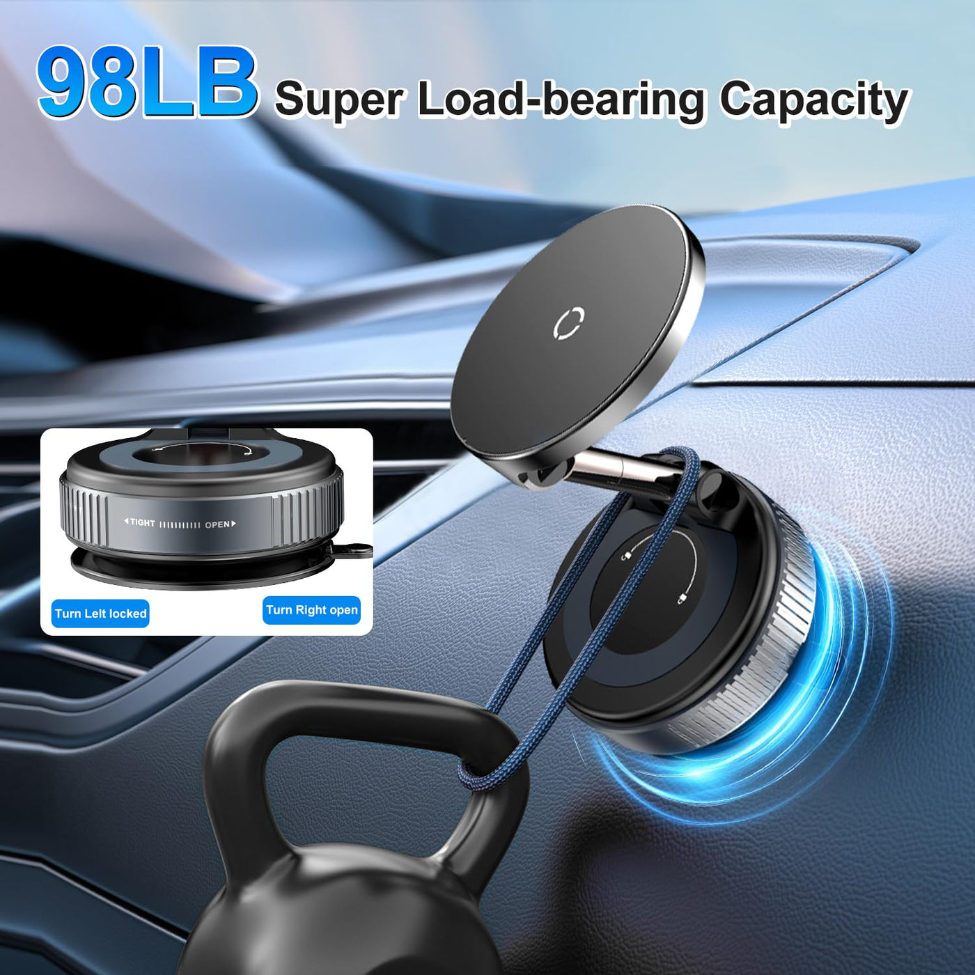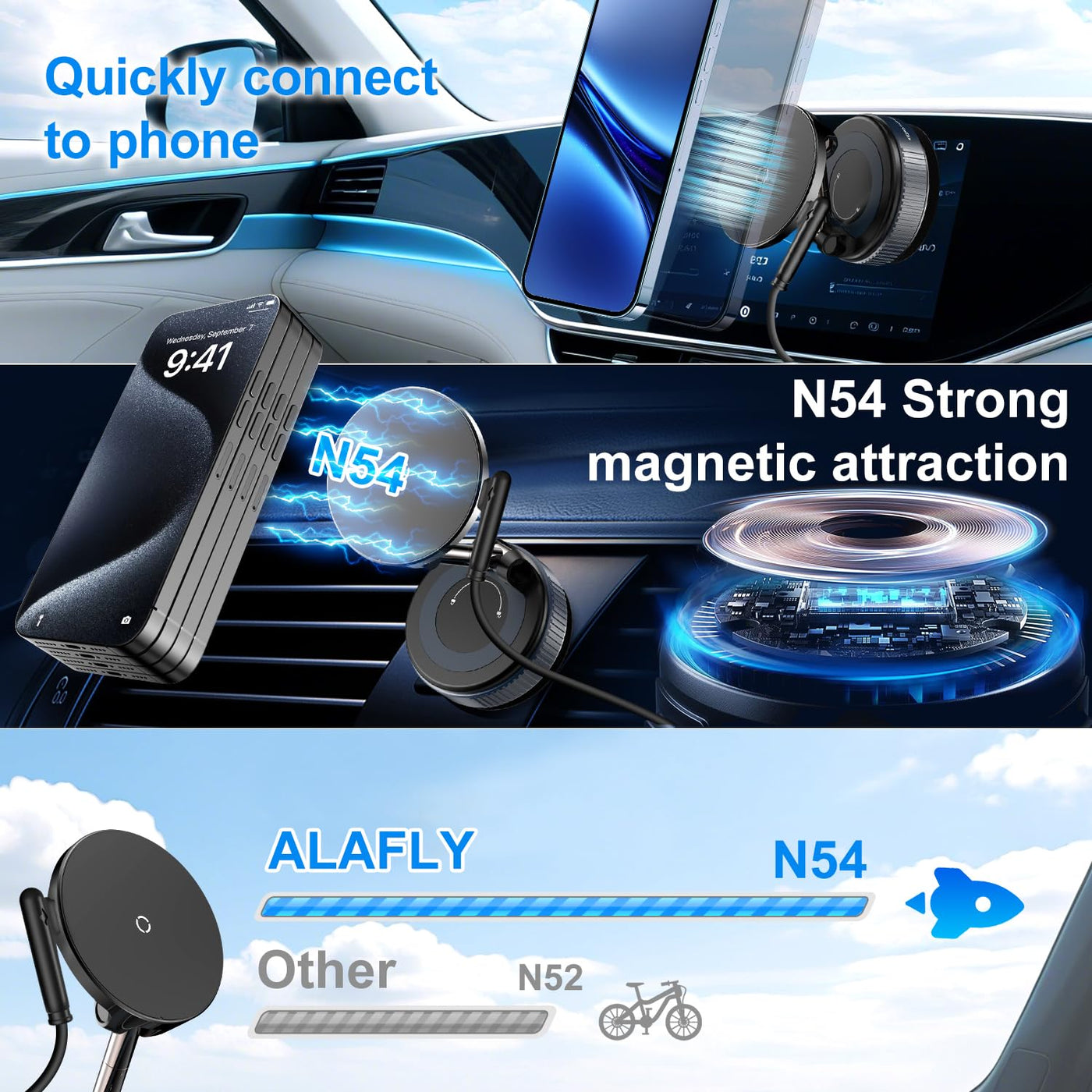 Alafly 15W Fast Charging Magnetic Car Phone Holder [New Elastic Suction Cup] 360 Adjustable Wireless Charger Car Mount For Magsa