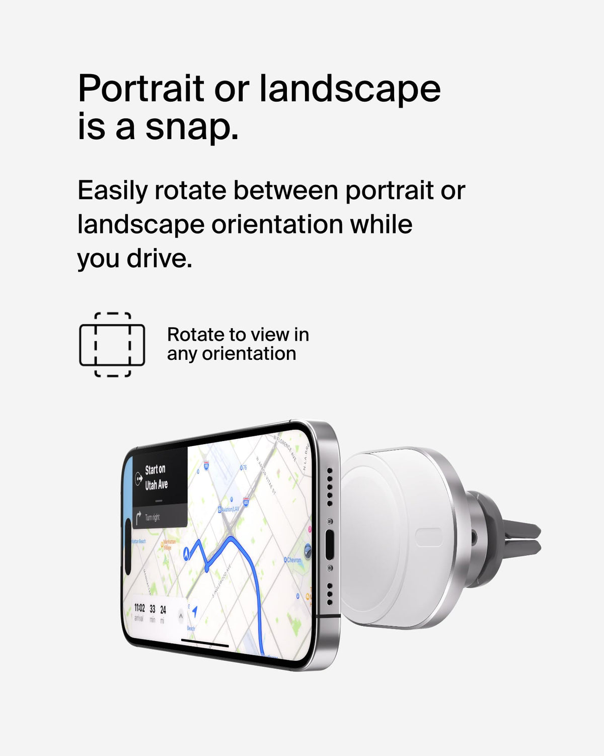 Belkin MagSafe Compatible Wireless Car Charger with 15W Fast Charging, Powerful Magnetic Vent Holder for iPhone 16, 15, 14, 13, and 12 Series, Secure Car Phone Mount White
