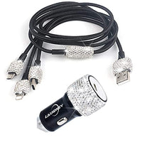 Bling Car Charger Accessories Set,Rhinestone Dual Usb Car Chargers + Bling 3 In1 Nylon Braided Charging Cable,Bling Crystal Deco