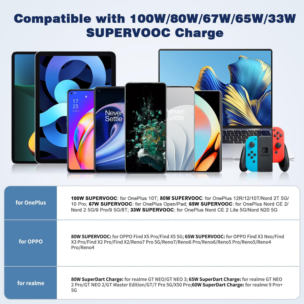 Car Charger Supervooc 100W 80W For Oneplus 13 13R 12R 12 11 10T 10 Pro, 65W Warp Charger For Oneplus Nord N30 N100 Open Pad 9 Pr