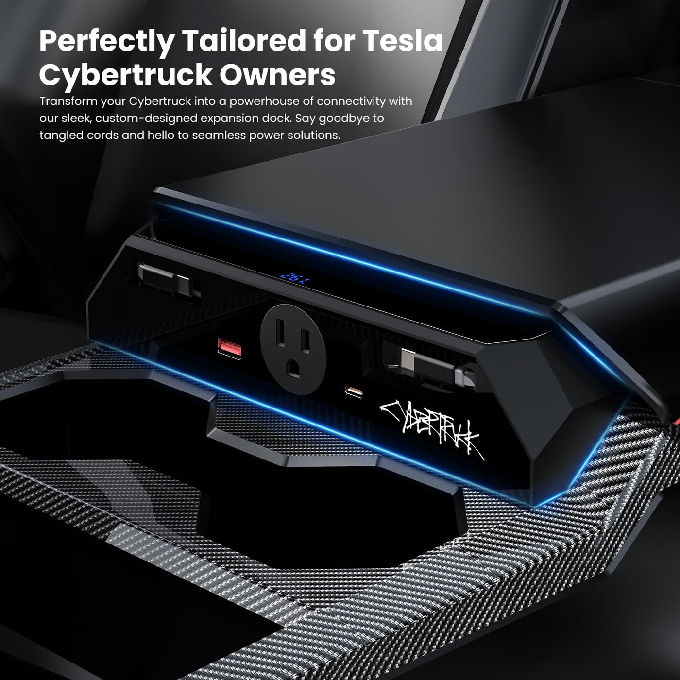 Cybertruck Usb Charger Hub With 110V Ac Outlet & Retractable Cables - Seamless Integration, 30W Pd/Qc3.0 Fast Phone Charge, Cent