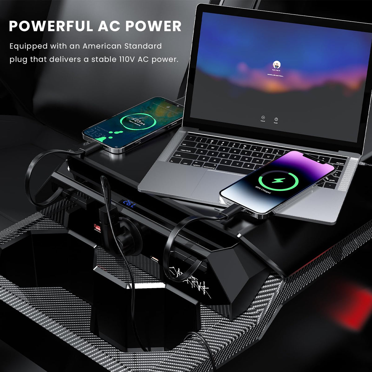 The Ultimate Power Ecosystem For Cybertruck Adventurers ? Proven In Three Core Scenarios Scenario 1: Mobile Kitchen Hub Simultaneously Powers: Car Refrigerator (Chill Beverages) + Electric Grill (Cook Steak) + Juicer (Make Smoothies) Stable 6-Hour Output When Cybertruck Camp Mode Activated Scenario 2 On-The-Go Office Ac Side: Laptops (Laptop Pro 16'') + Portable Printers Dc Side: 3-Device Charging (Phone + Tablet + Headphones @ 84W Total) Scenario 3: Crisis Ready Priority Power Allocation: Tire Pump (Air Refill) + Vacuum (Debris Clean-Up) + Emergency Lights ? Cybertruck-Exclusive Engineering Precision 48V Voltage Stabilization (