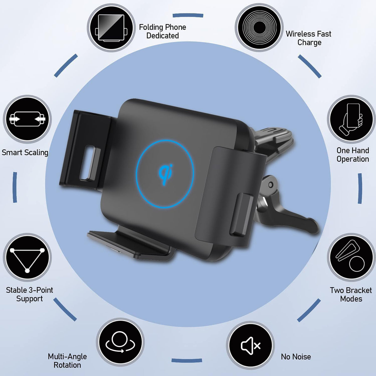 Specifications - Wireless Protocol:Qi - Compatibility:Qi-Certified By Wpc (Wireless Power Consortium) To Support Wireless Charging On All Qi-Enabled Devices - Input: 9V 1.67A Or Qc3.0 - Output Powr: 5W 7.5W 10W 15W - Charging Efficiency: 80% - Charging Distance: 8Mm Max - Dimension: 122*75*65Mm - Net Weight: 146.5G - Two Installation Methods (Air Vent + Suction Holder) - Contains Retail Packaging - Ac Adapter Not Included Qi-Enabled Devices: For Iphone: 14 / 14 Plus / 14 Pro / 14 Pro Max / 13 / 13 Pro / 13 Mini / 13 Pro Max / 12 / 12 Pro / 12 Mini / 12 Pro Max /11/11 Pro/11 Pro Max/Xr/Xs/Xs Max/X/8/8 Plus For Samsung: Galaxy Z Fold6 / Fold5 / Fold4 / Fold3 / Galaxy Z Fold 2 / Fold /Note20 Series/Note10 Series/S23 Sseries/S22 Series/S21 Series/S20 Series/S10/S10+/S9/S9+ Etc. For Oneplus: 10 /10 Pro / 9 / 9 Pro / 8T / 8T Cyberpunk 2077 / 8 Pro For Google Pixel 7 / 7 Pro Pixel Lg Etc.And All Smart Phones That Support Qi Wireless Charging. Features: 1, Magnetic Sensor And Motor Opening/Closing. Charges Your Phone Automatically When It Is Placed Into The Holder. 2, Two Side On/Off Button For Easy Detachment Of Your Smartphone With Just One Hand, Convenience &Amp; Safe Driving. 3, Qi Certified And Fod Production, Safety Charing. 4, 3 In 1 Solution: Attaches To Car Window, Dashboard Or Air Vent With Included Accessories. 5, Adjustable Angle And 360 Degree Rotatable. 6, For Samsung Galaxy Z Fold4 / Fold3 / Z Fold2 / Fold &Amp; Huawei Mate X2 / X / Xs Mobile Phone. 7, Our Package Includes Qc3.0 Car Charger And Charging Cable 8, Built-In Super Capacitor, So You Can Still Manually Open The Clip (Within A Few Minutes) And Take Out The Phone After Your Car Is Turned Off.