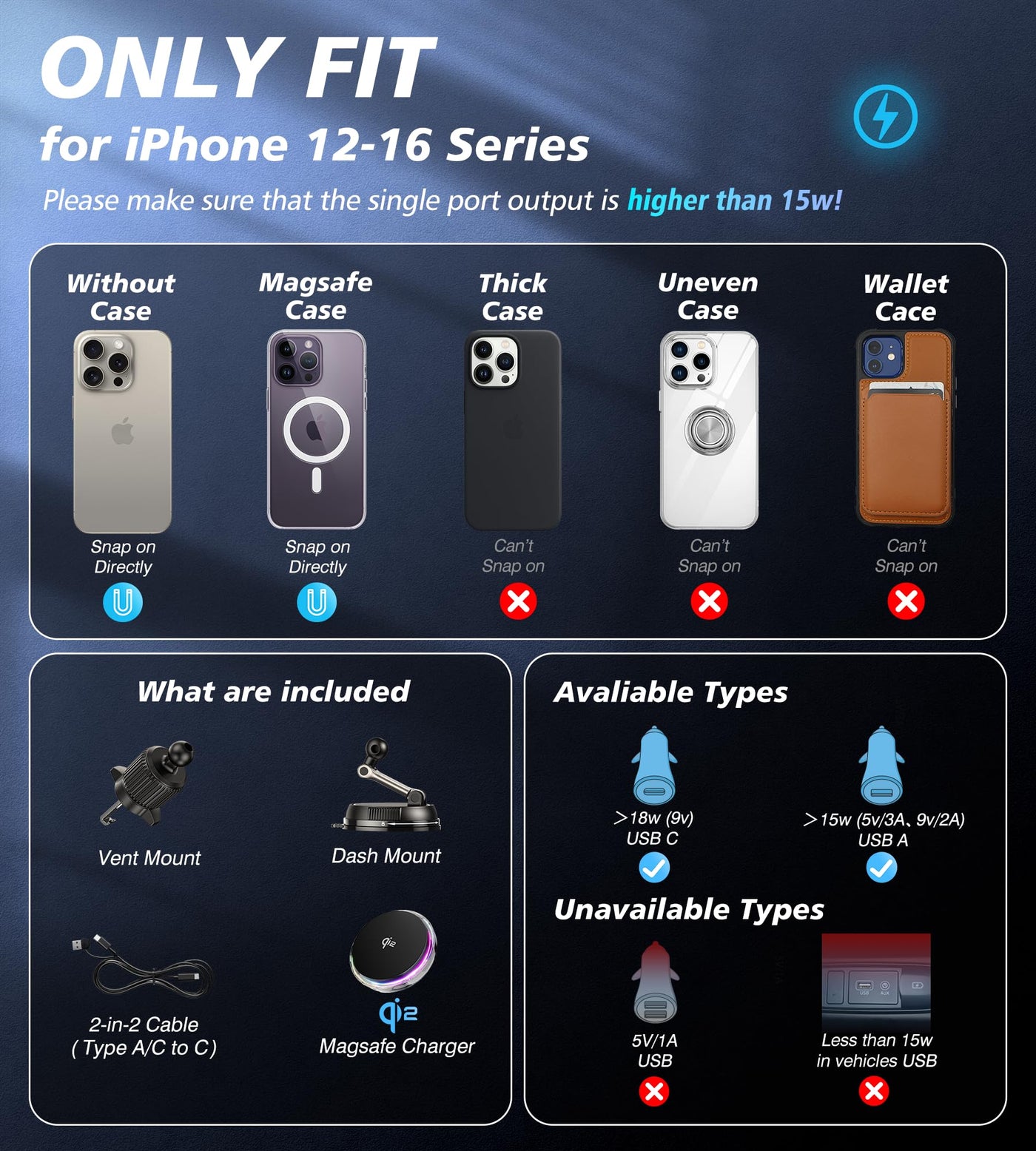 Charger Magsafe Mount Phone Holders For Your Holder Wireless Iphone Cooler Magnetic Mag Safe 16 15 14 13 12 11 E Se Pro Max Magnet 3 15W Fast Charging Vent Magnets Cooling Fan Dashboard Dash Wind Windshield Mag-Safe Air Qi2 170Mm Plus Suction Led Lights Rgb Car Accessories