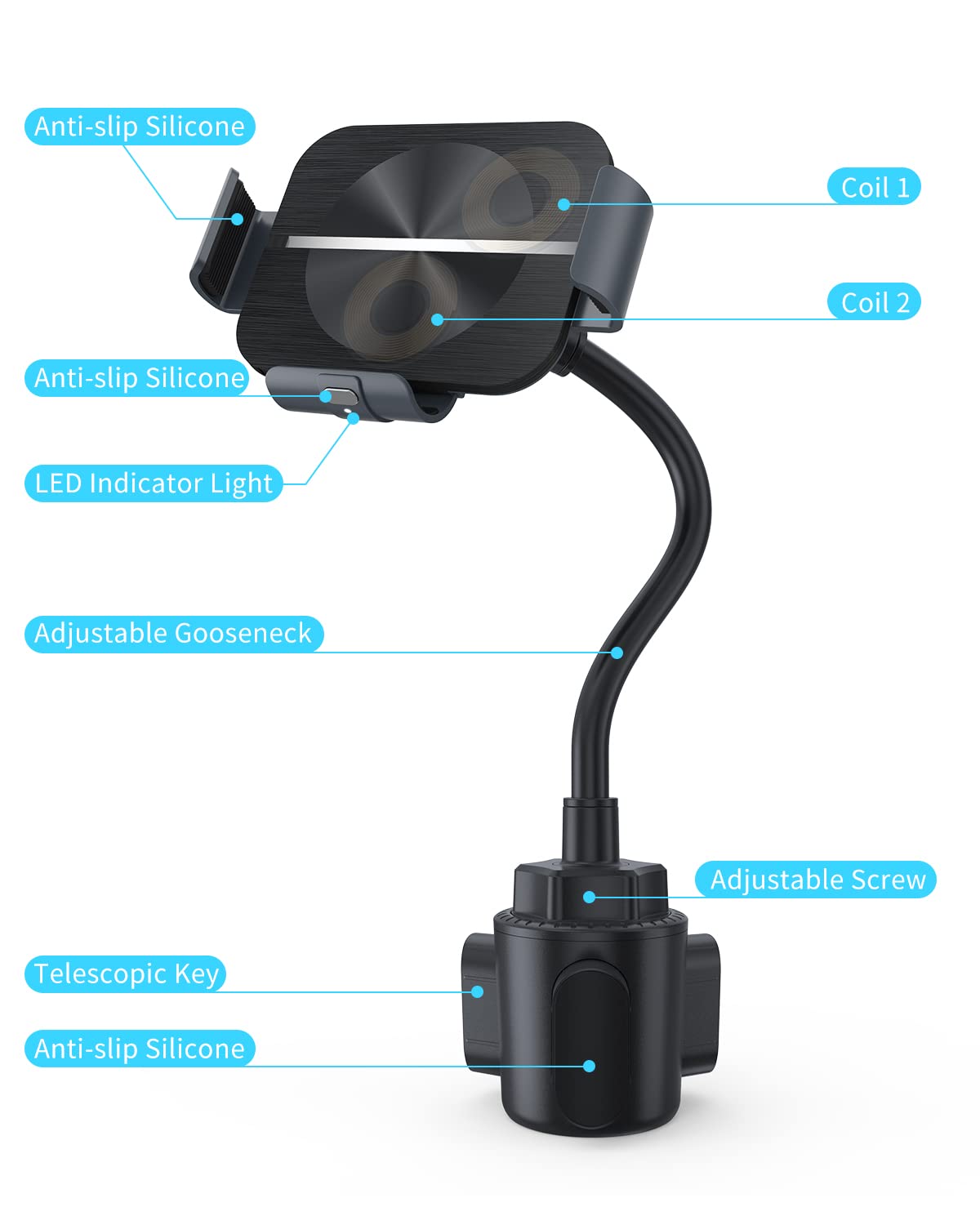 Makaqi Wireless Car Charger For Z Fold 6/5/4/3/2, Dual Coil Cup Holder Phone Mount, Wireless Car Charger For Tesla, Auto Clampin