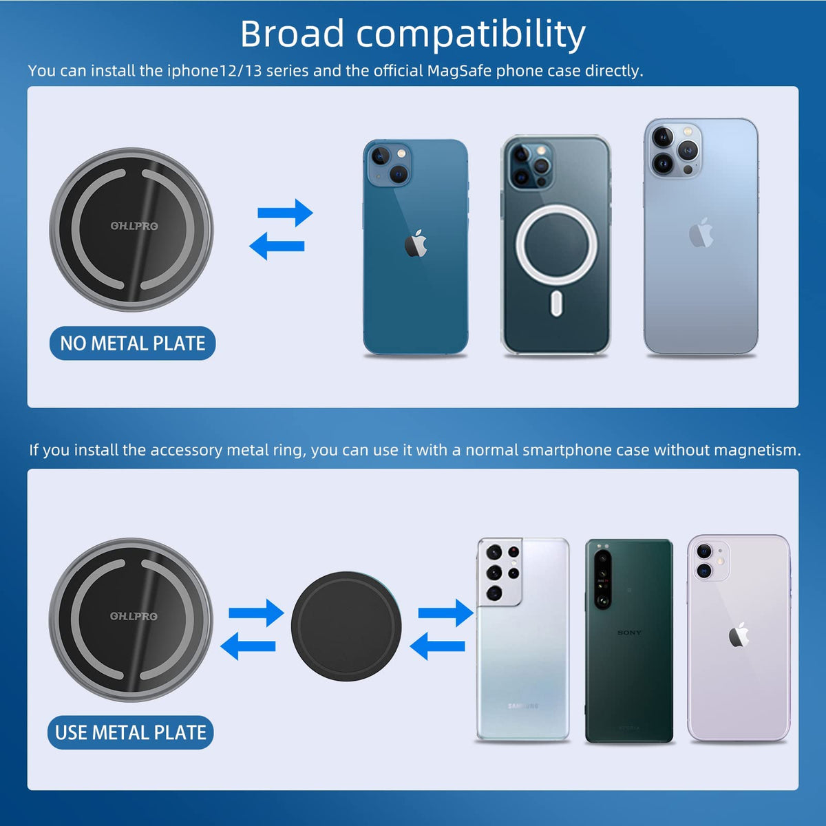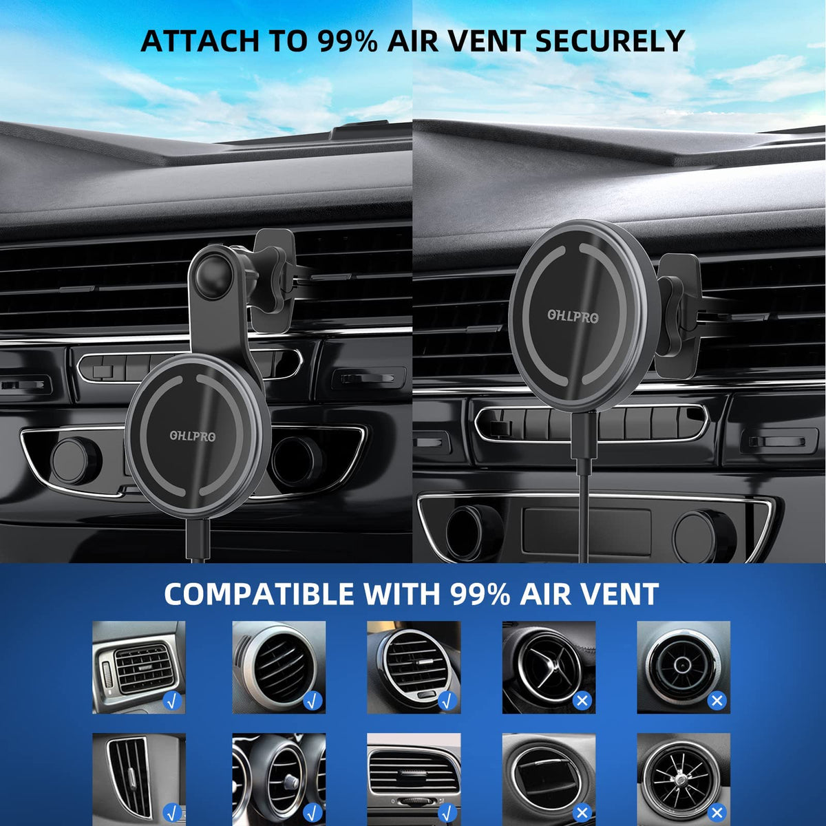 Ohlpro Compatible With Magsafe Car Mount For Iphone 16, Magnetic Wireless Car Charger With Extended Arm, Never Block Vents For I