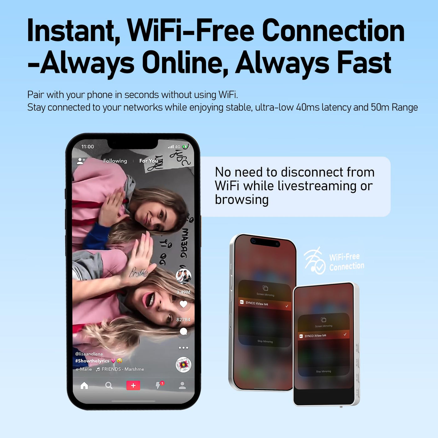Synco M4 Magnetic Vlog Selfie Monitor Screen, Back Camera Monitor For Live Stream Tiktok, Compatible With Iphone & Android,4'' 4