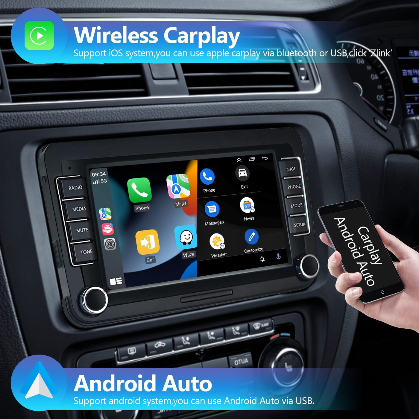 2+64G Android Car Stereo With Wireless Carplay/Android Auto For Vw Jetta Seat Passat Tiguan Cc Golf Skoda 7 Inch Touchscreen Headunit Gps Wifi Bluetooth Fm With Backup Camera For Volkswagen