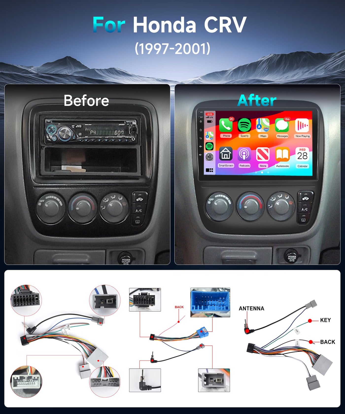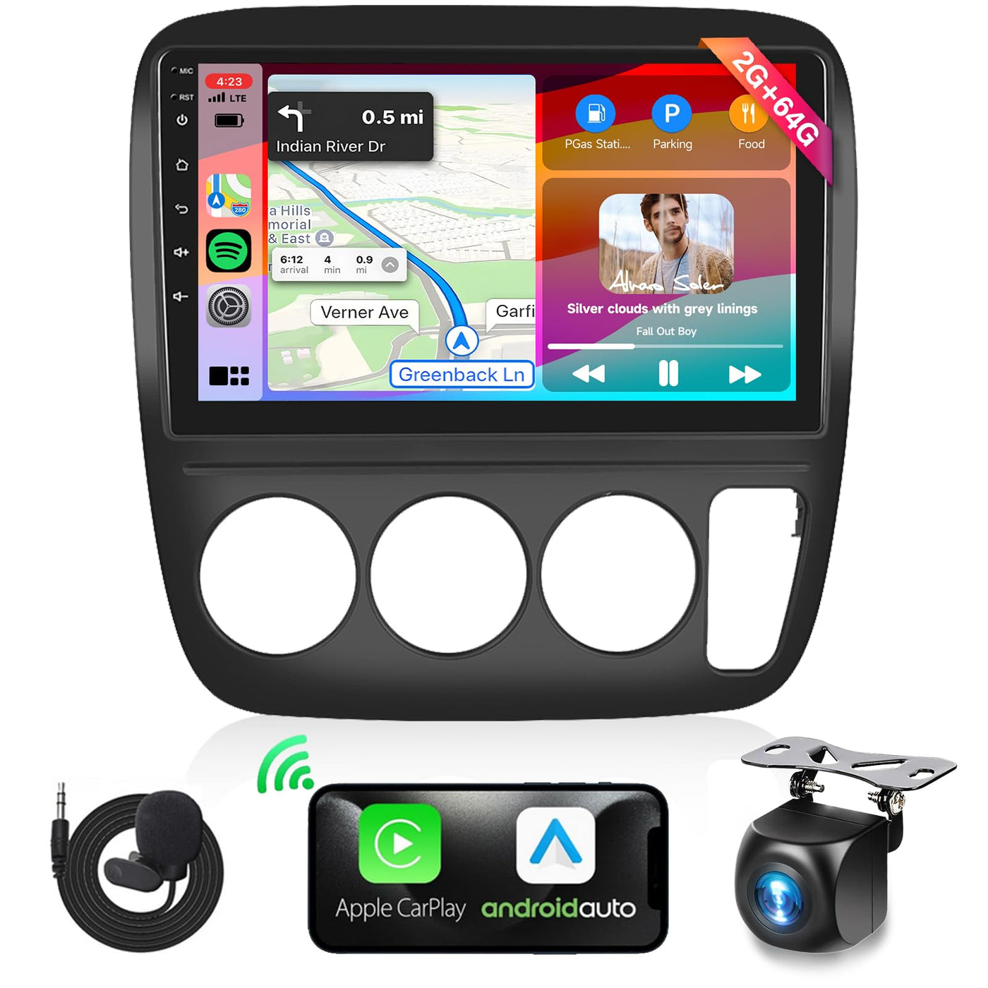 2G 64G Android Car Stereo For Honda Crv 1997 2001 Manual A/C With Wireless Carplay Android Auto Mirrorlink Hifi Audio, Podofo 9Inch Hd Touchscreen Radio With Bluetooth Gps Wifi Swc Usb Backup Camera