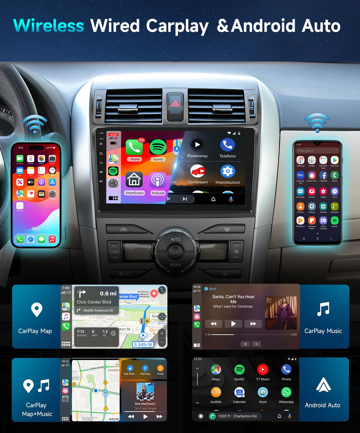 2G 64G Car Stereo Radio For Toyota Corolla 2009 2010 2011 2012 2013 With Wireless Carplay/Android Auto/Mirrorlink/9Inch Hd Ips Touch Screen/Bluetooth/Gps/Eq/28Uis/Wifi/Ahd Backup Camera