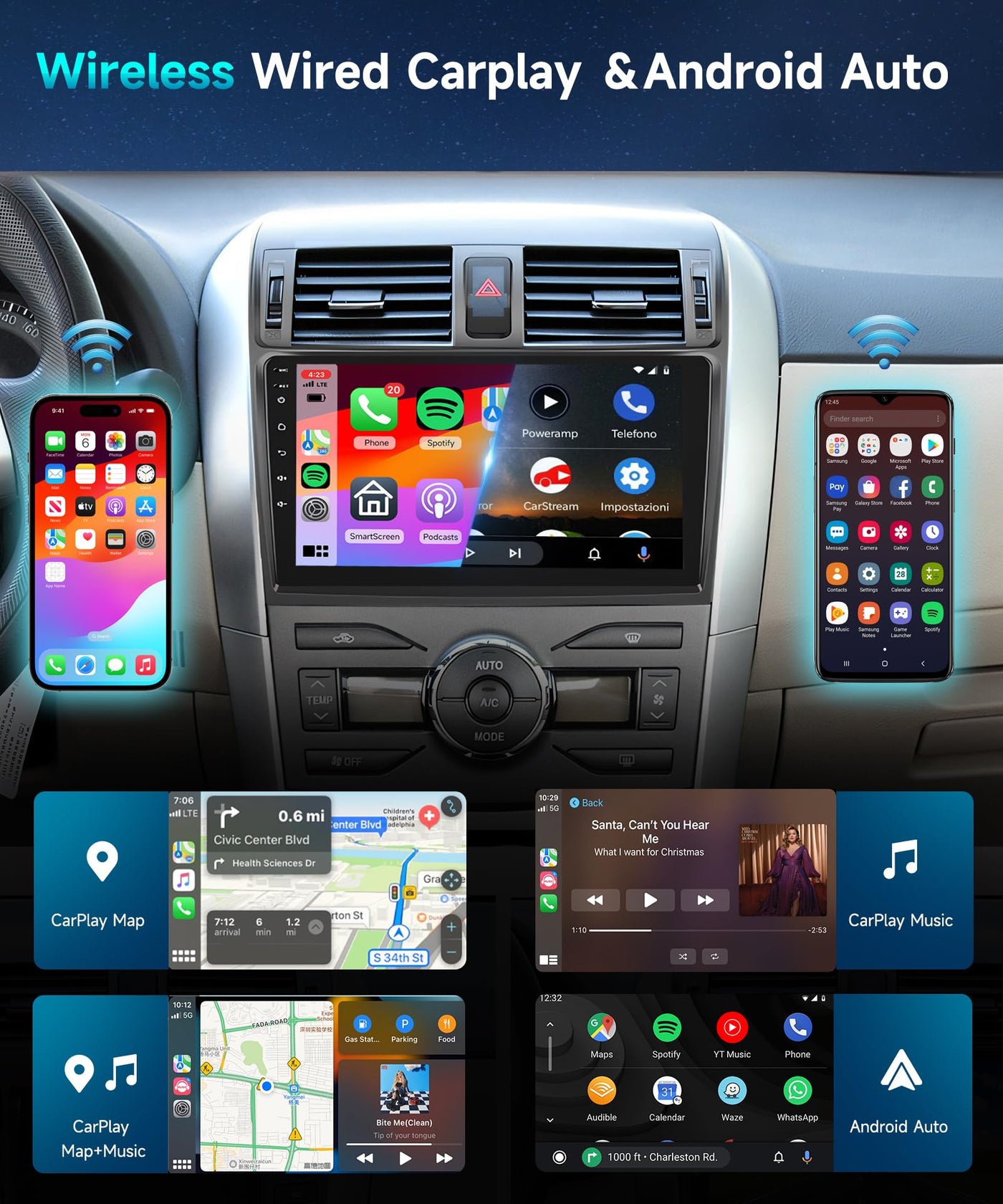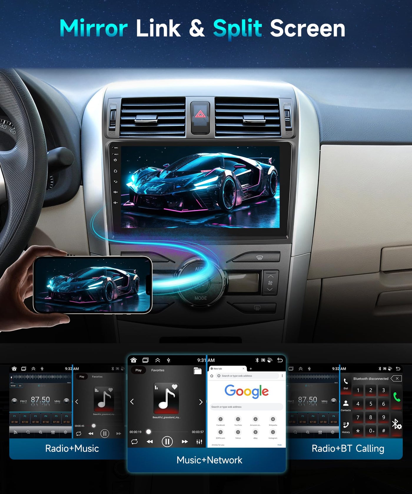 9 Inch Touchscreen Android Car Stereo For Toyota Corolla 2009 2010 2011 2012 2013 With Apple Carplay Android Auto Specifications: System:Android 11 Screen Size:9'' Memory:2Gb (Ram)+64Gb (Rom) Screen Resolution:1024*600 Power Output:4*45W Work Temperature:-20?-75? Steering Wheel Control Function:Support Radio Band:Fm/Rds Video Output:Support Reversing Input: Ahd720/Cvbs External Microphone: Support Split Screen: Support Maps:Built-In Offline Maps(Requires Internet To Download Data) Wifi:Support Usb:Double Usb Interface Audio Format:Ape/Flac/Wav/Mp3/Wma Etc Video Format:Mkv/Rmvb/Avi/Mp4/Mdv Etc Picture Format:Png/Jpeg/Jpg/Gif/Wbmp/Bnp Etc Factory Setting Keyword:8888