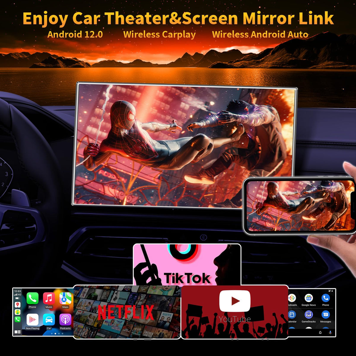Wireless Carplay & Android Auto Adapter Is Compatible With Netflix Youtube Tik Tok ??Dual Phone Compatibility This Adapter Supports Both Iphone And Android Devices, Enabling Wireless Carplay For And Android Auto For Android Phones. Connect Seamlessly For Safe Calling And Navigation. ??Fast, Fluid Response With The Latest Android 11 System, Experience Real-Time Responsiveness Between Your Phone And Car Display. No Lags Or Delays When Accessing Directions, Music, Calls And More. ??Drive Unplugged Say Goodbye To Tangled Wires While Driving. This Adapter Allows Wireless Connection So You Can Focus On The Road, Not Cables. Manage Apps And Routes With Just Your Voice. ??Nonstop Entertainment On The Road With Android Auto And Carplay, You Can Easily Access All Your Entertainment Apps To Keep Kids Happily Engaged On Long Trips. Streaming Videos, Playing Music And Mobile Games Has Never Been Easier Features: -Wired To Wireless Carplay & Android Auto -Plug And Play -Suitable For 98% Cars -Qualcomm Chip -Faster Connection 5-15S -Screen Mirroring -Support External Tf Card(Up To 128Gb) -Built-In Netflix,Youtube, Tiktok Product Specifcations: Os:Android 11.0 Cpu: Qcm2290, Quad-Core, 64-Bit Arm, Cortex-A53Processor@2.0Ghz Memory: 2Gb Lpddr3 + 16Gb Emmc Expanda Ble Memory:Micro Sd Card ( Up To 128Gb) Wi-Fi: 2.4&5 Ghz, 802.11 A/B/G/N/Ac Bt: 2.1 Edr/3.0 Hs/4.2 Le/5.0 Le Operating Environment: -35? +75? ??Note: Only For Factory Wired Carplay Cars