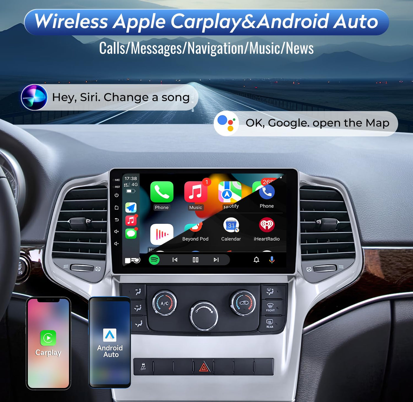 5Gwifi 8 Core 4G+64G Android 12 Car Stereo Radio In Dash Fit For Jeep Grand Cherokee Wk 2008 2013, 9''Hd Touchscreen Head Unit W