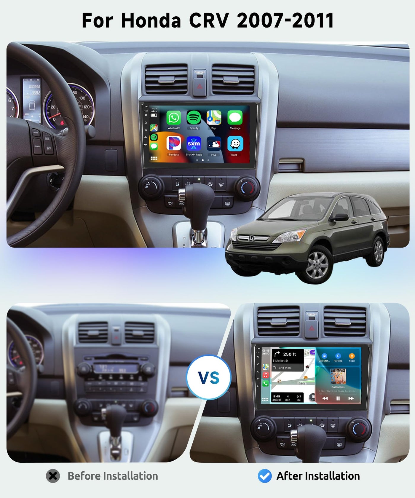 Podofo 9 8 CORE Car Radio Stereo for Honda CRV 2007-2011, 4G+64G, Wireless CarPlay, Android Auto, GPS, Bluetooth,