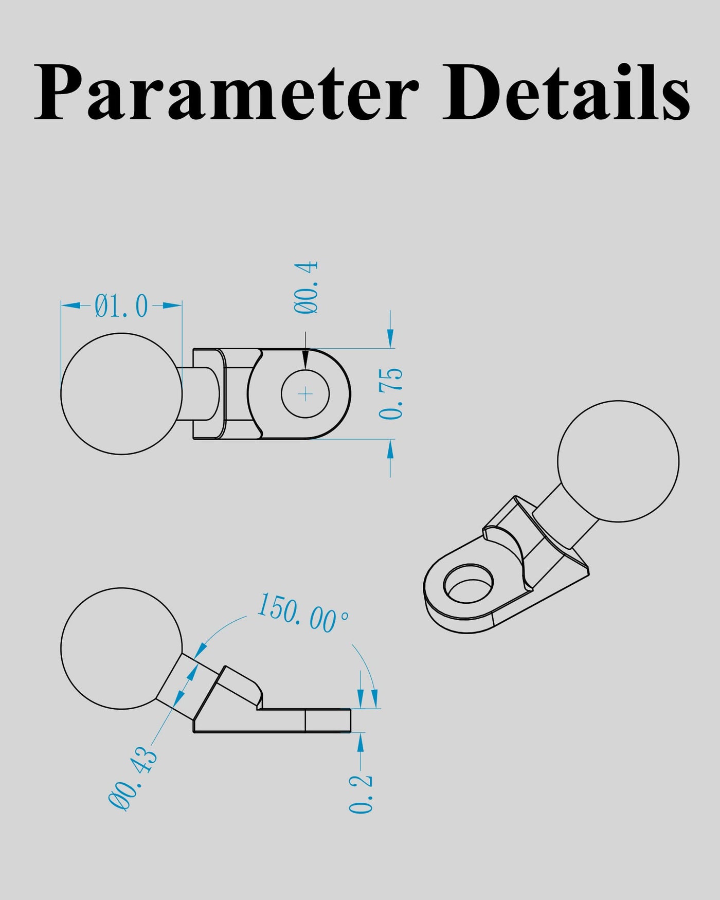 The 1 Inch Ball Adapter Main Body Made Of 6061-T6 Aluminum Alloy. Cnc Machining And Class Iii Hard Anodized Finish. Tpu Over-Molded Ball Head, Non-Slip And Wear-Resistant. .