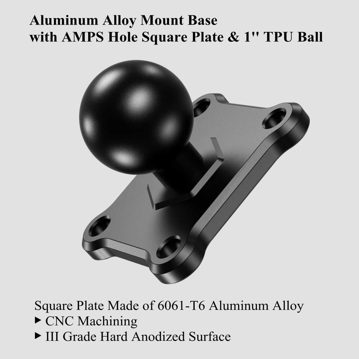 The 4-Hole Amps Square Plate Base Mount With 1 Inch Tpu Ball. Compatible With Ram Mounts B Size Double Socket Arm. The Square Plate Made Of 6061-T6 Aluminum Alloy Material With Cnc Machining And Iii Grade Hard Anodized Surface For Durability And Reliability In The Most Demanding Environments. Tpu Over-Molded Ball Head, Non-Slip And Wear-Resistant.