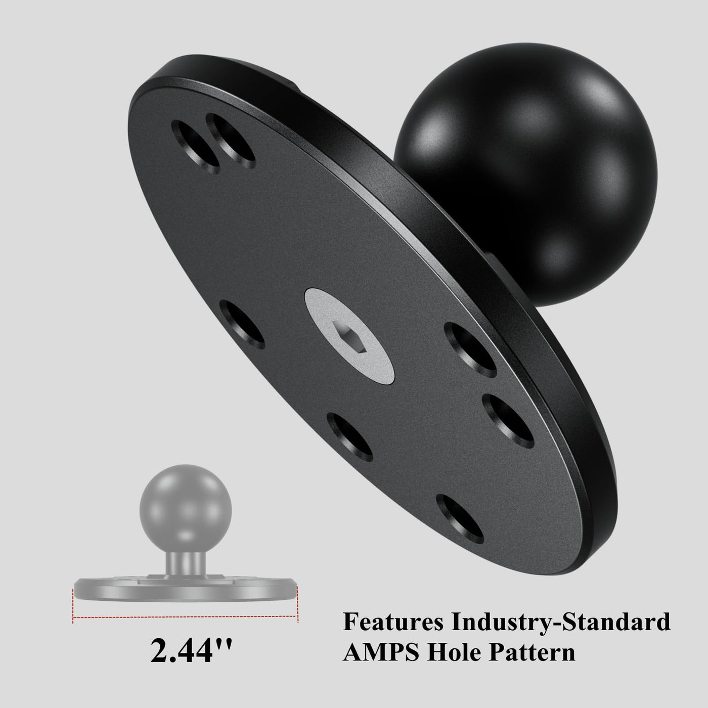 The Amps Hole Round Plate Base Mount With 1 Inch Tpu Ball. Compatible With Ram Mounts B Size Double Socket Arm. The Round Plate Made Of 6061-T6 Aluminum Alloy Material With Cnc Machining And Iii Grade Hard Anodized Surface For Durability And Reliability In The Most Demanding Environments. Tpu Over-Molded Ball Head, Non-Slip And Wear-Resistant.