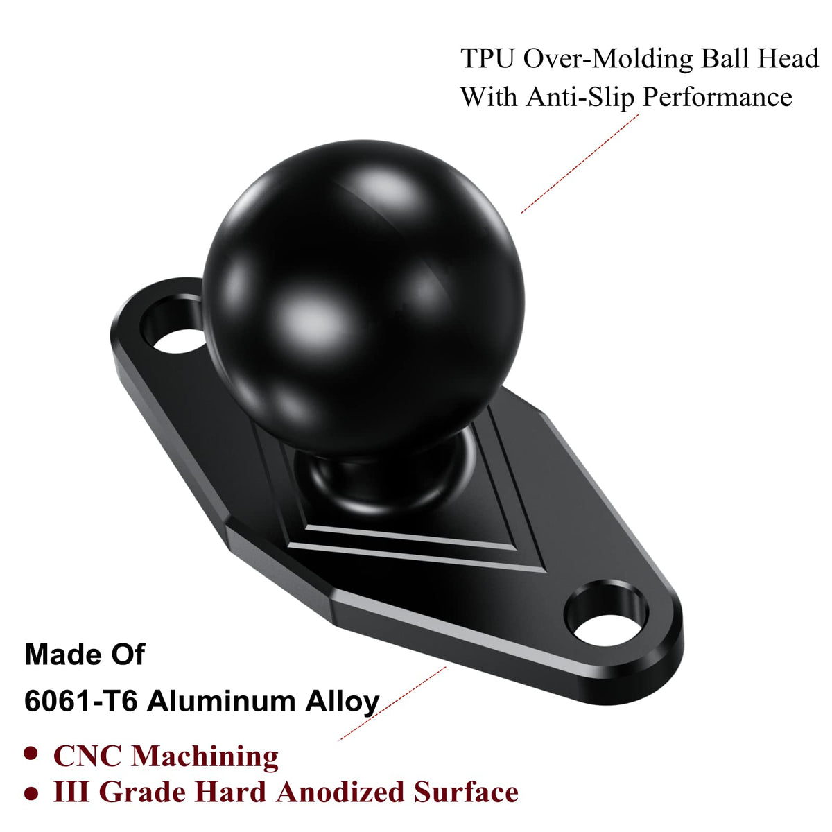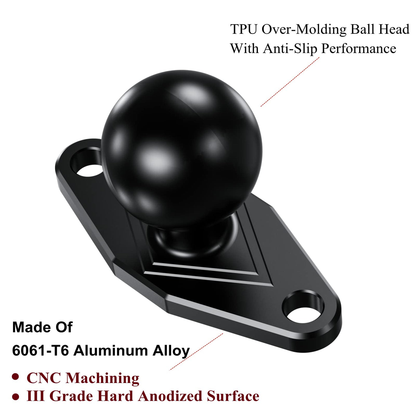 The Aluminum Alloy Diamond Mount Base With 1'' Tpu Ball, Ccompatible With Ram Mounts B Size 1 Inch Ball Double Socket Arm. Main Body Made Of 6061-T6 Aluminum Alloy For Durability And Reliability In The Most Demanding Environments. Cnc Integral Molding, Solid Structure. Anodized Surface Treatment, Smooth Surface, Durable. Tpu Overmolded Ball Head, Non-Slip And Wear-Resistant.