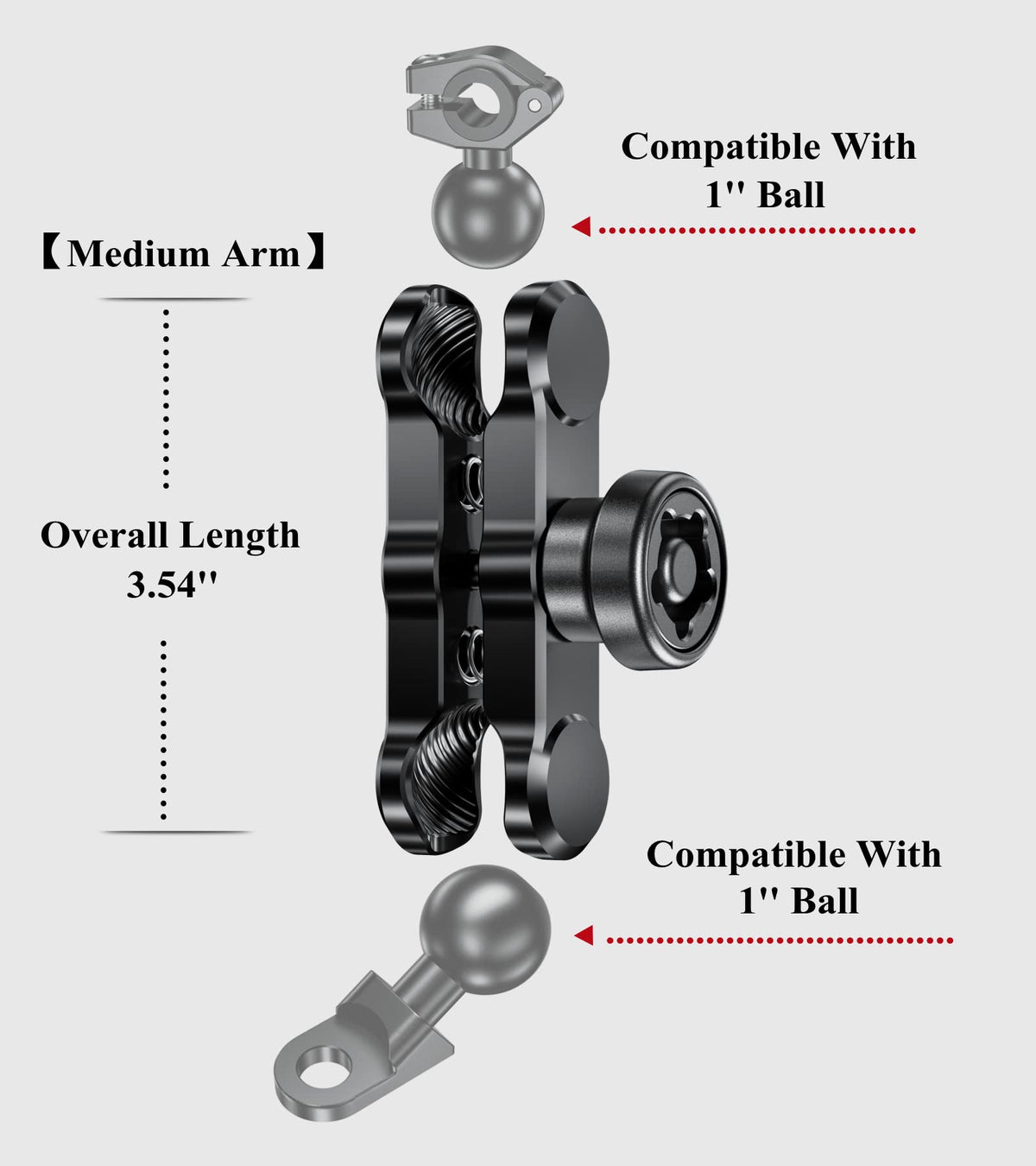 The Anti-Theft Aluminum Alloy Double Socket Arm Medium Arm Compatible With Ram Mounts B Size 1 '' Ball Components. Made Of 6061-T6 Aluminum Alloy For Durability And Reliability In The Most Demanding Environments. Cnc Integral Molding, Solid Structure. Anodized Surface Treatment, Smooth Surface, Durable. (Medium Arm)