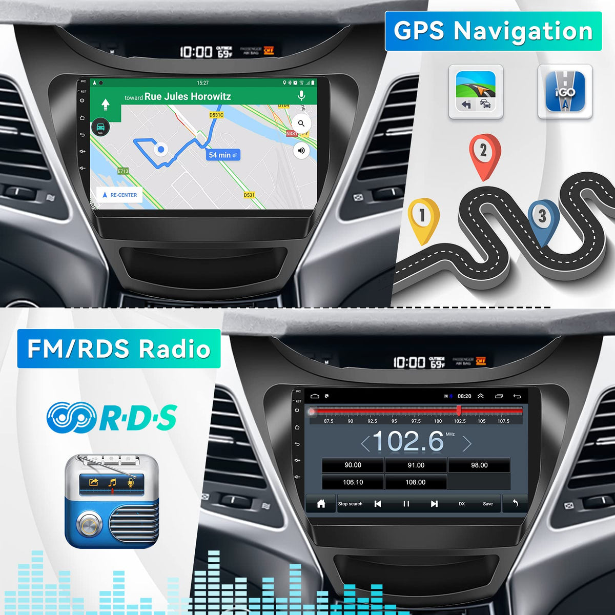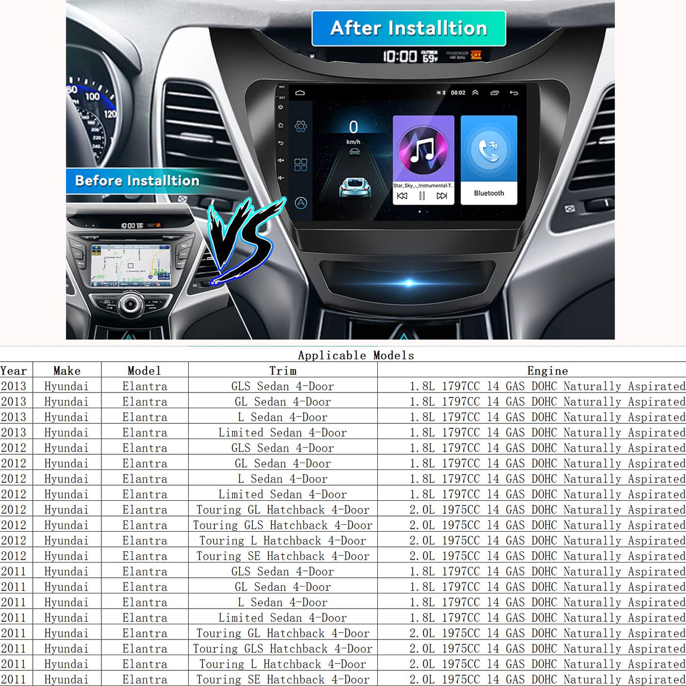 ?For 2011 2012 2013 Hyundai Elantra Radio ?9 Inch Android Car Stereo Capacitive Touch Screen High Definition Gps Navigation Bluetooth Usb Player 1G Ram 32G Rom | ?Gps Navigation & Wifi Connect?Built-In Offline Map. Online Map Also Be Supported, After Connected To Wifi, You Can Use Gps Navigation At Anywhere. This Item Allow Install Or Delete Android Apps From Application Store, As The Same As Smart Phone. | ?Bluetooth & Fm/Rds Radio?This Android Car Stereo With Bluetooth 4.2, Connect To Your Phone Via Bluetooth For Hands-Free Answering And Making Calls,Greatly Reduce The Risk Of Driviing And Never Miss The Next Import Turn. The Double Din Radio With Fm/Amrds Radio, Preset Stations That You Can Listen To Real-Time Traffic, News Broadcasts, Weather Forecasts Etc. | ?Steering Wheel Control?If Your Car Has Factory Steering Wheel Key Control Feature (Shorted For Swc,Based On Resistive Analog Signal Input Only; If Your Car Happens To Use Digital Canbus Data Signal, And You Can Find Applicable Digital-To-Resistive Converter), Swc Feature Can Still Be Retained. If Not,Need To Add An External Steering Wheel Controller (Wired Connection) | ?Mirror Link? (App: Phonelink) Function For Most Of Andorid And Ios Phones. For Android: Two-Way Control, For Ios: One-Way Control,The Screen Of Your Smartphone Can Be Mirrored On Units Screen. Compatible With Iphone And Android Without Data Transfer