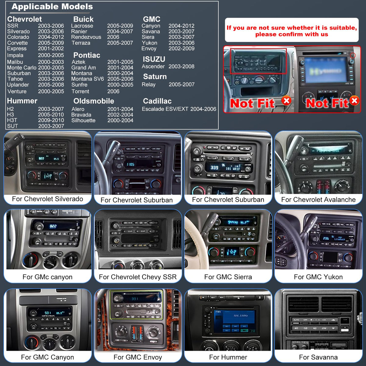 Car Radio For Chevrolet Chevy Silverado Ssr Tahoe 2003-2006, Gmc Sierra Yukon 2003-2006, Hummer H2 2003-2006, 7'' Car Stereo Touch Screen, Wireless Carplay Android Auto, Gps Navigator, Back Camera