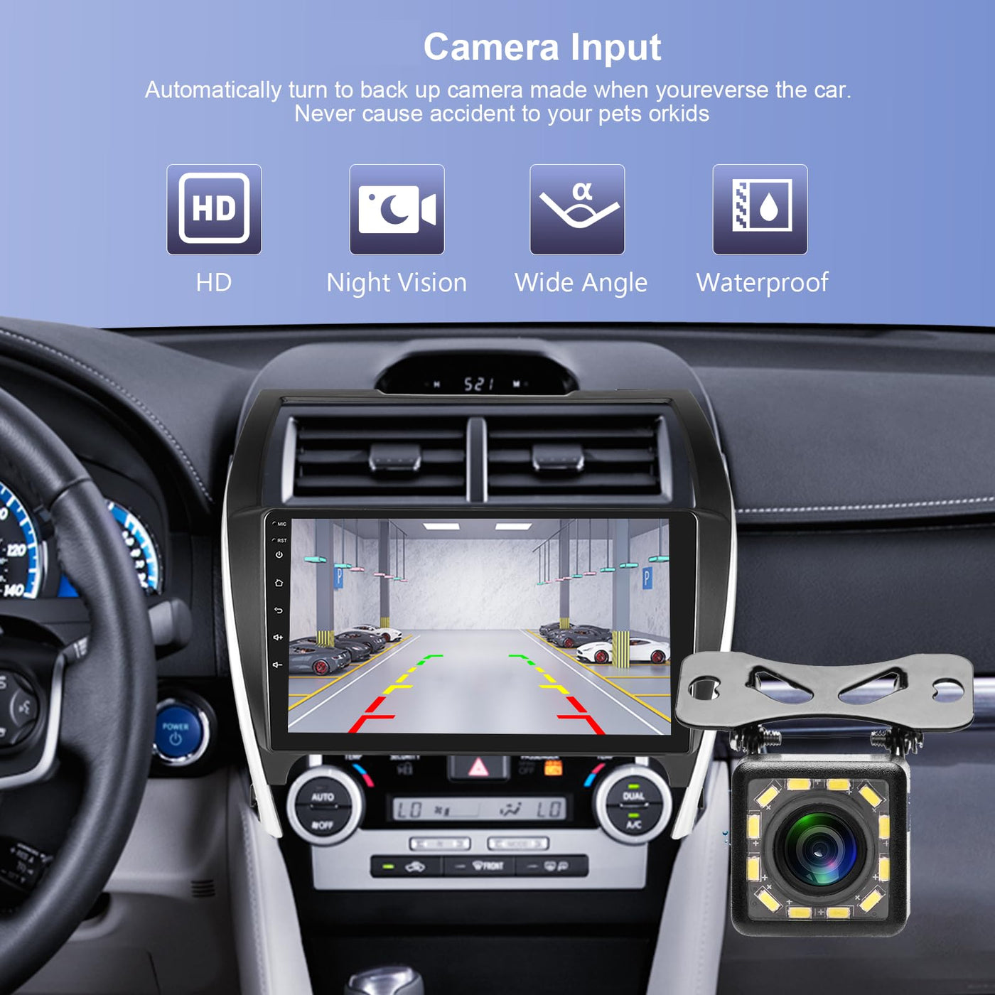Compatible Vehicles:For Toyota Camry 2012-2014 Features: ?Hd 10.1'' 2.5D Tempered Glass Mirror Auto Radio Mp5 Player ?Upgraded Dual System Mirror Link:Ios/Android Mirror Link ?Built-In Gps Navigation: Built In Offline Navigation. With Wifi Connected, Google Maps Can Be Used Perfectly, You Can Go Anywhere You Want And Never Get Lost Again. ?Rear View Camera: Come With A Backup Camera,The Car Is Connected To The Reverse Gear To Automatically Switch ?Built-In Bluetooth With A2Dp/Hands Free/Phone Book ?Double Usb Adapter Input ?You Can Enjoy Music From You Mobilephone Without Any Cables, And Also Support Usb Connetion. ?Fm Radio: Online Music You Can Transfer The Music To The Car Stereo By Fm To Enjoy The Original Car Stereo Sound,With 18 Preset Stations Specifications: System:Android Screen Size:10.1'' Memory:1Gb (Ram)+32Gb (Rom) Screen Resolution:1024*600 Mirror Link:Android/Ios Radio Band:Fm Power Output:4*45W Steering Wheel Control Function:Support Video Output:Support Maps:Built-In Offline Maps Wifi:Support Usb:Double Usb Interface Factory Setting Keyword:8888