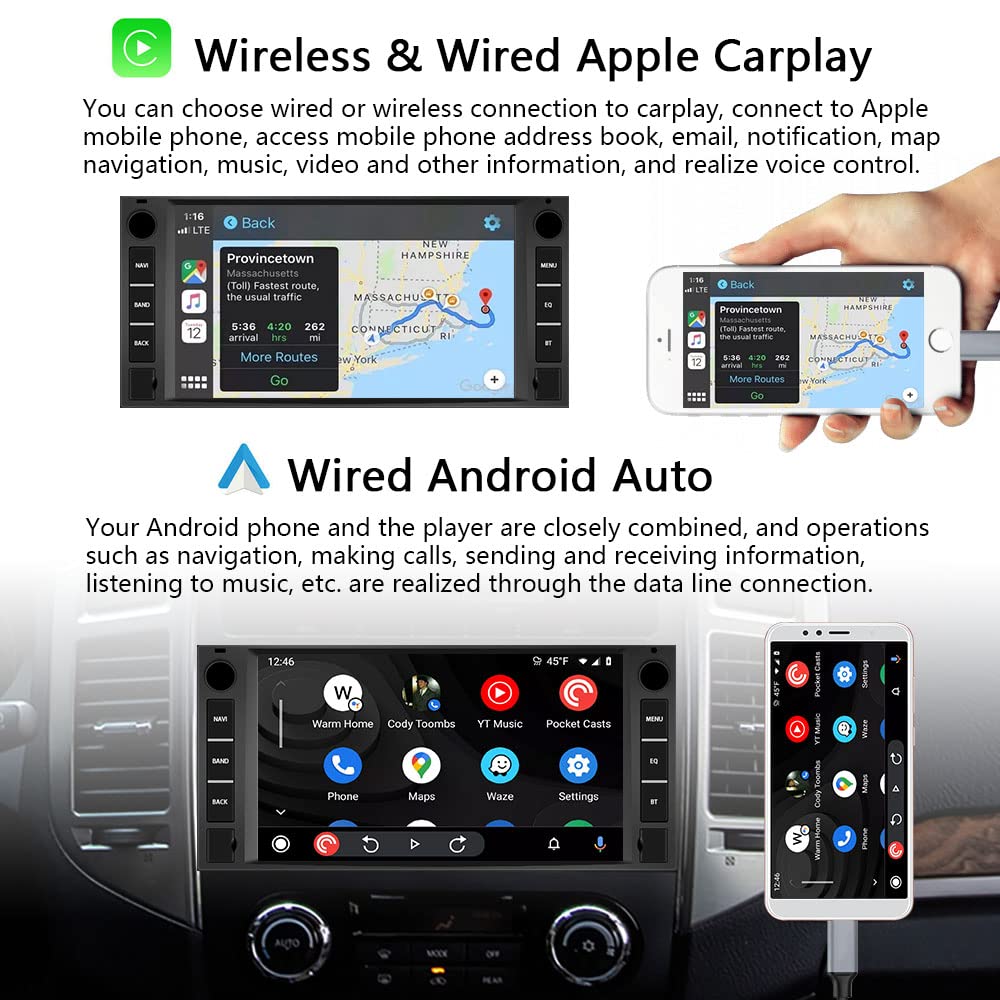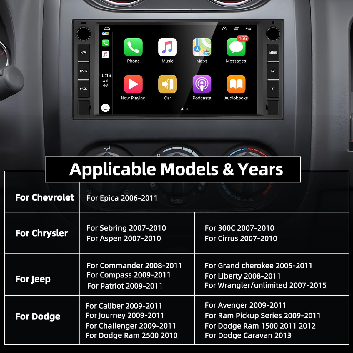 Car Stereo For Jeep Wrangler Dodge Chevrolet Ram 1500, Double Din Android Radio With Wireless Apple Carplay, 7' Touchscreen Stereo With Wifi, Gps, Rds/Fm Radio, Bluetooth + Backup Camera & Mic