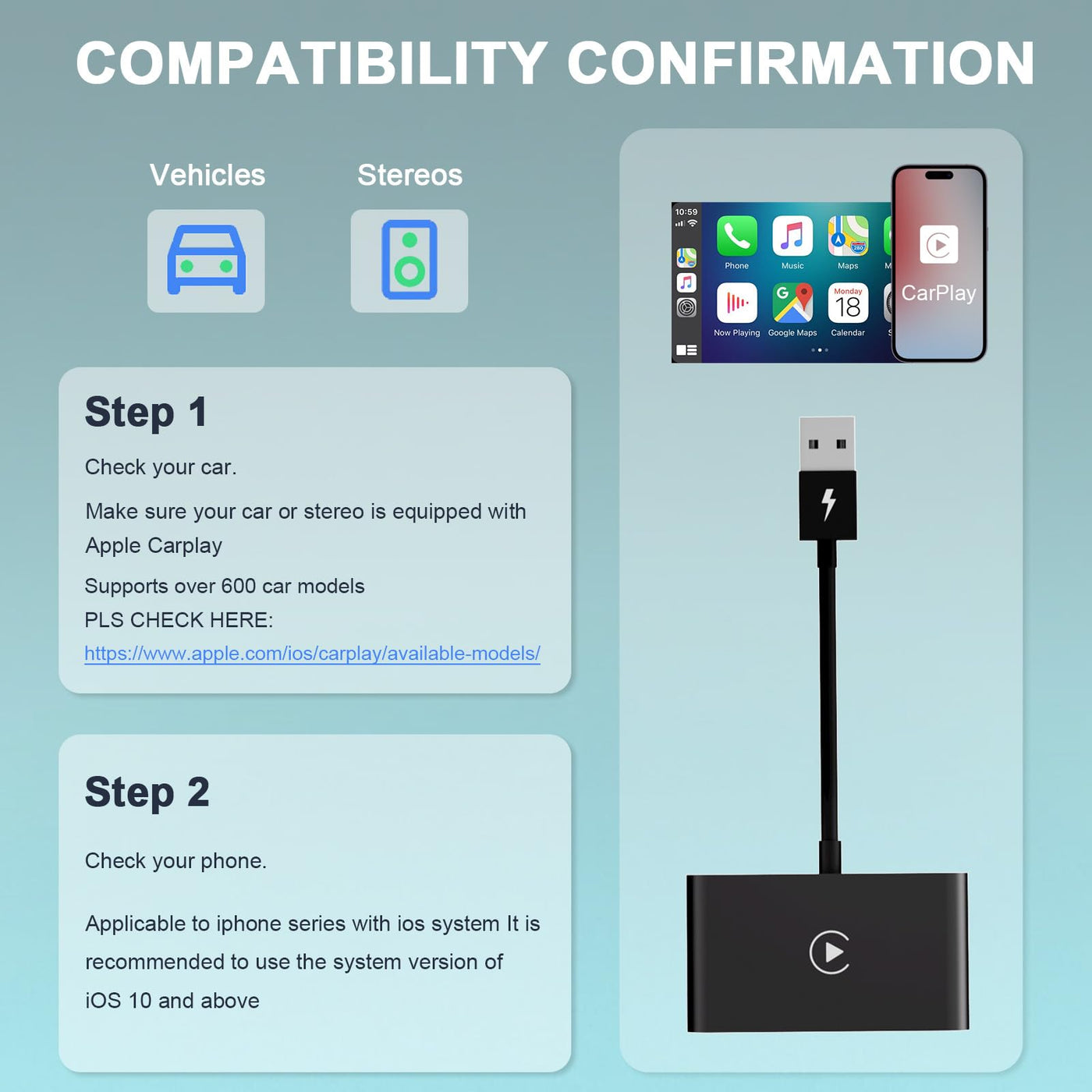 Q: Is the LXJADAP Carplay Wireless Adapter compatible with all cars?A: The LXJADAP Carplay Wireless Adapter is designed to work with most cars that have a wired CarPlay function, provided they run iOS 10 or above. It is compatible with over 1000 car models from various brands. However, it does not support Android devices, so ensure your vehicle is equipped with the original wired CarPlay feature.