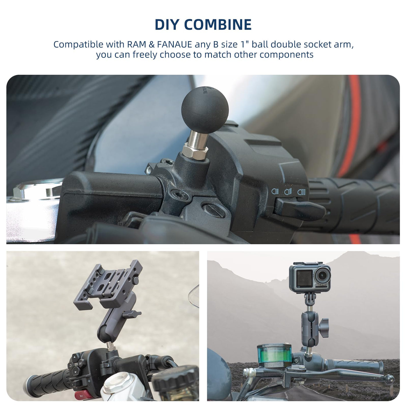 Fanaue 1'' Ball Adapter With M8 X 1.25 Threaded Post.Compatible With Ram Mounts B Size Double Socket Armextended Connection To A