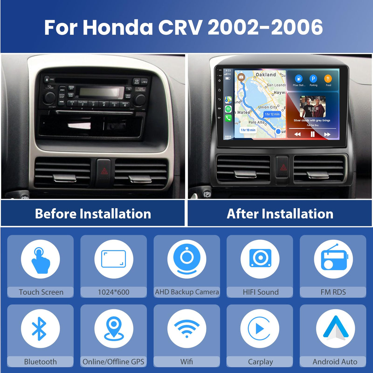 For Honda Crv 2002 2006 Wireless Carplay/Android Auto Android Car Stereo With 9' Touchscreen Autoradio Support Mirror Link Gps Navigation Wifi Backup Camera Multimedia Player Headunit