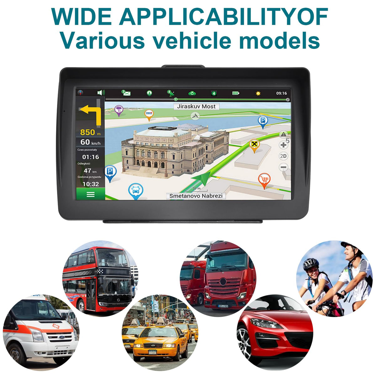 7-Inch Hd Touchscreen Gps Navigator With Up To 800 X 480 Pixel Resolution And 256 Mb 16G Of Extra Memory. This Gps Navigation System Has Enough Space For You To Store Maps And Information. The Gps System Features Turn-By-Turn Voice Navigation (Multi-Language Version), Comprehensive Voice Prompts, Real-Time And Safe Navigation Of The Way Forward; Intelligent Error Correction, If The Route Is Wrong, The System Will Automatically Generate A New Route, So That You Can Get To Your Destination Faster, Safer And More Accurate. The Top Of The Navigation Display Is Designed With A Unique Sunshade, So You Can See The Screen Clearly Even In Sunlight Or Bright Light. It Also Comes With A Car Charger, Usb Cable, Rear Bracket And Suction Cup Mount. Easy To Install And Suitable For All Vehicles