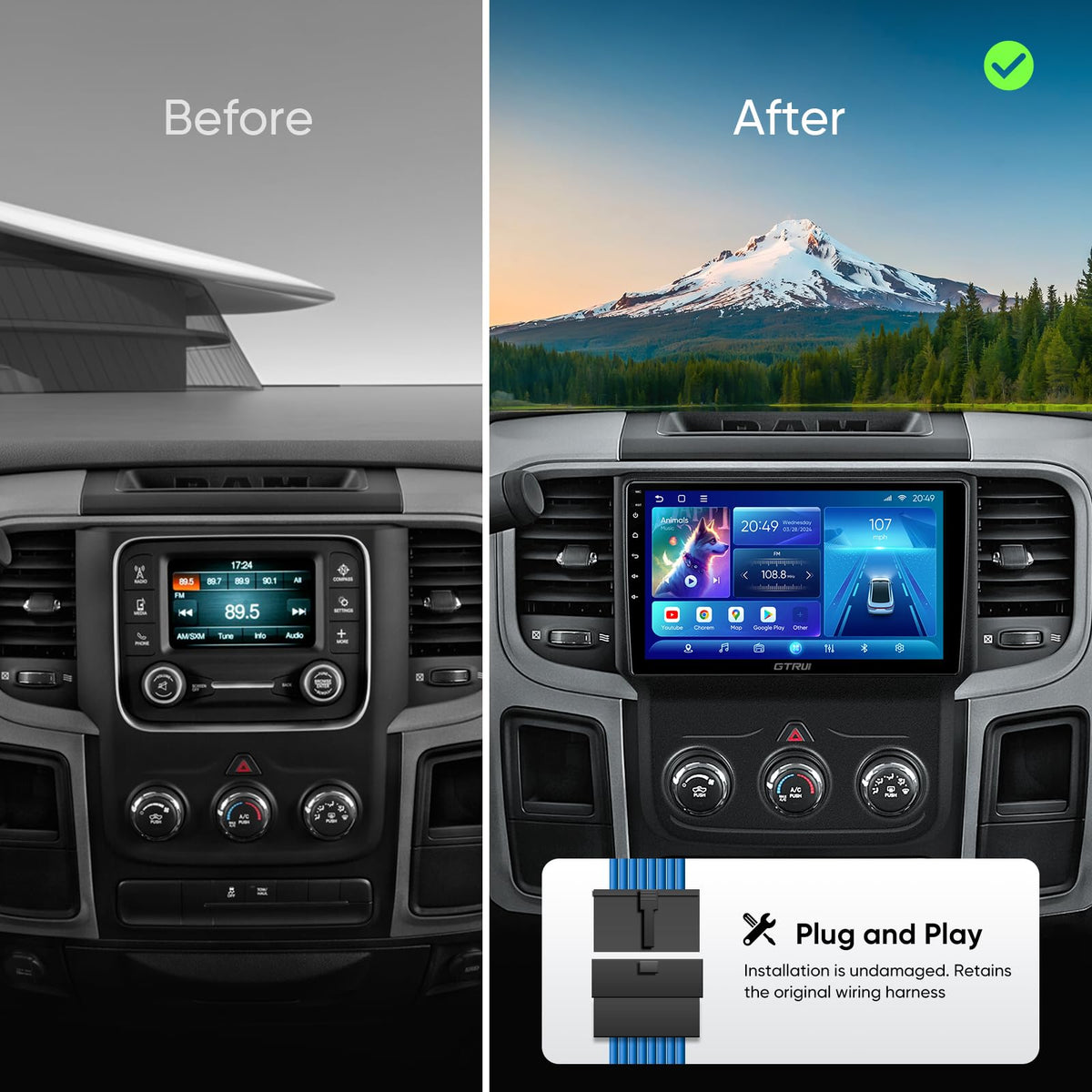 Applicable Model & Year: Dodge Ram 1500 2500 3500 With Manual Ac ( 2013-2018 ) Note: This Car Stereo Does Not Work With A Ram With Auto Ac. Oem Original Functions Retained: Steering Wheel Button Control Factory Original Reverse View Camera Usb Port Input Original Radio Antenna Note: Lf The Factory Original Camera Is Displaying On The Mirror, There Will Be No Image In This Android Head Unit. This Car Stereo Does Not Work With The Oem Xm Satellites Radio.