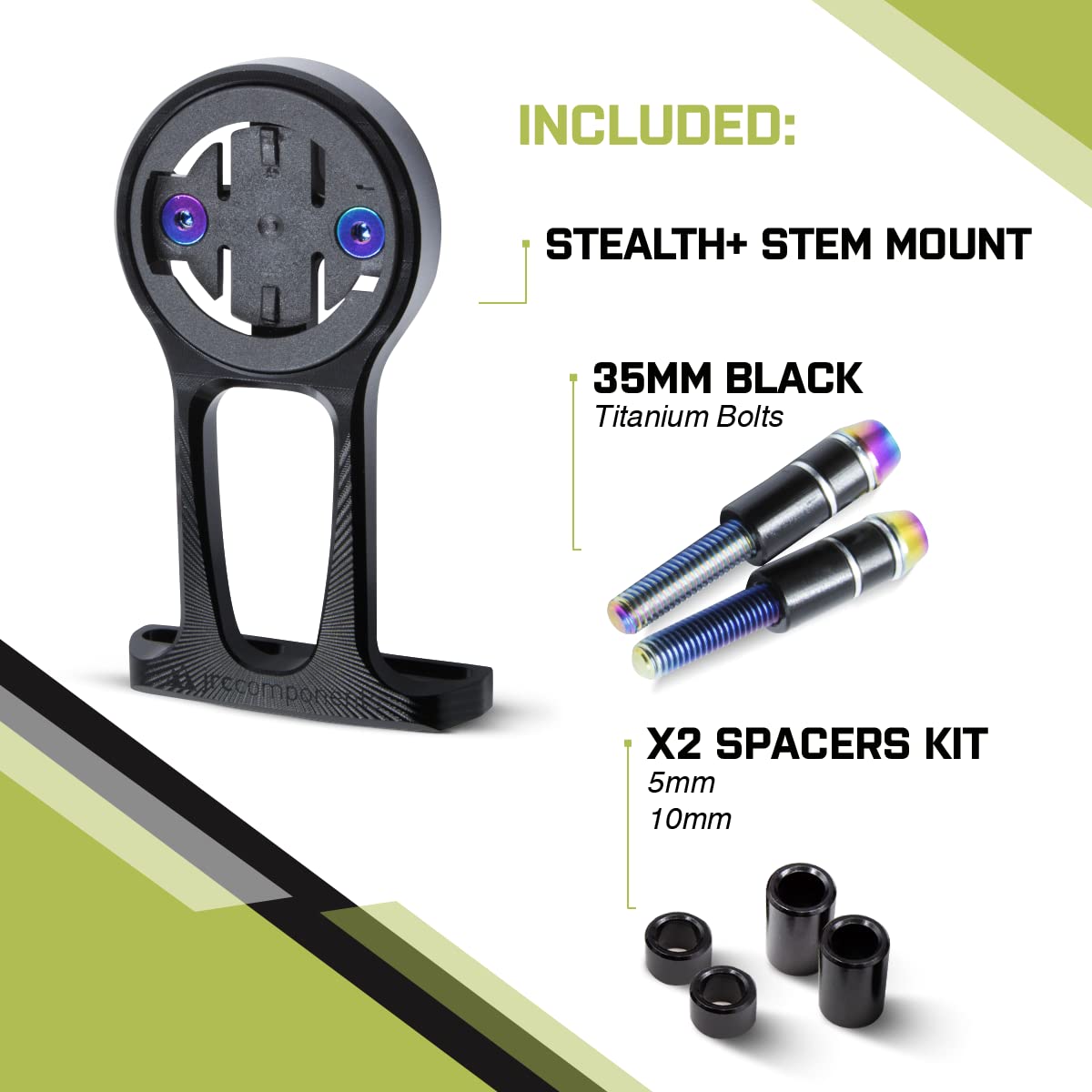 Stealth+ Premium Out Front Mount For Wahoo Gps Computersa Sleek And Understated Design Blend Perfectly With Your Cockpit! The Stealth+ Stem Faceplate Premium Mount Features Upgraded 6Al4V Ti Bolts, A Range Of Spacers (5+10Mm), And Dark Etching.Spec:Fully Machined Cnc Aluminium Body With A Hard-Wearing Plastic Resin&Nbsp;Insertextremely Lightweight At Only 32 Grams (Including 35Mm Bolts &Amp; Washers)Suitable For Use With Stems That Use A 4-Bolt M5 Thread*Please Ensure Your Bolts Are M5&Nbsp;Diameter Thread*Can Mount To Either The Top Or Bottom Row Of Stem Boltsadjustable Bolt Spacing To Fit A Wide Variety Of Stems:-Maximum Bolt Spacing Of 38Mm Center To Center-Minimum Bolt Spacing Of 12Mm Center To Center&Nbsp;Wahoo Compatibility:Fits All&Nbsp;Wahoo (Elemnt) Gps Devicesincluded:Stealth+ Stem Mount35Mm Titanium Boltsmatching Titanium Bolts For Plastic Insert5Mm Spacer Kit10Mm Spacer Kit