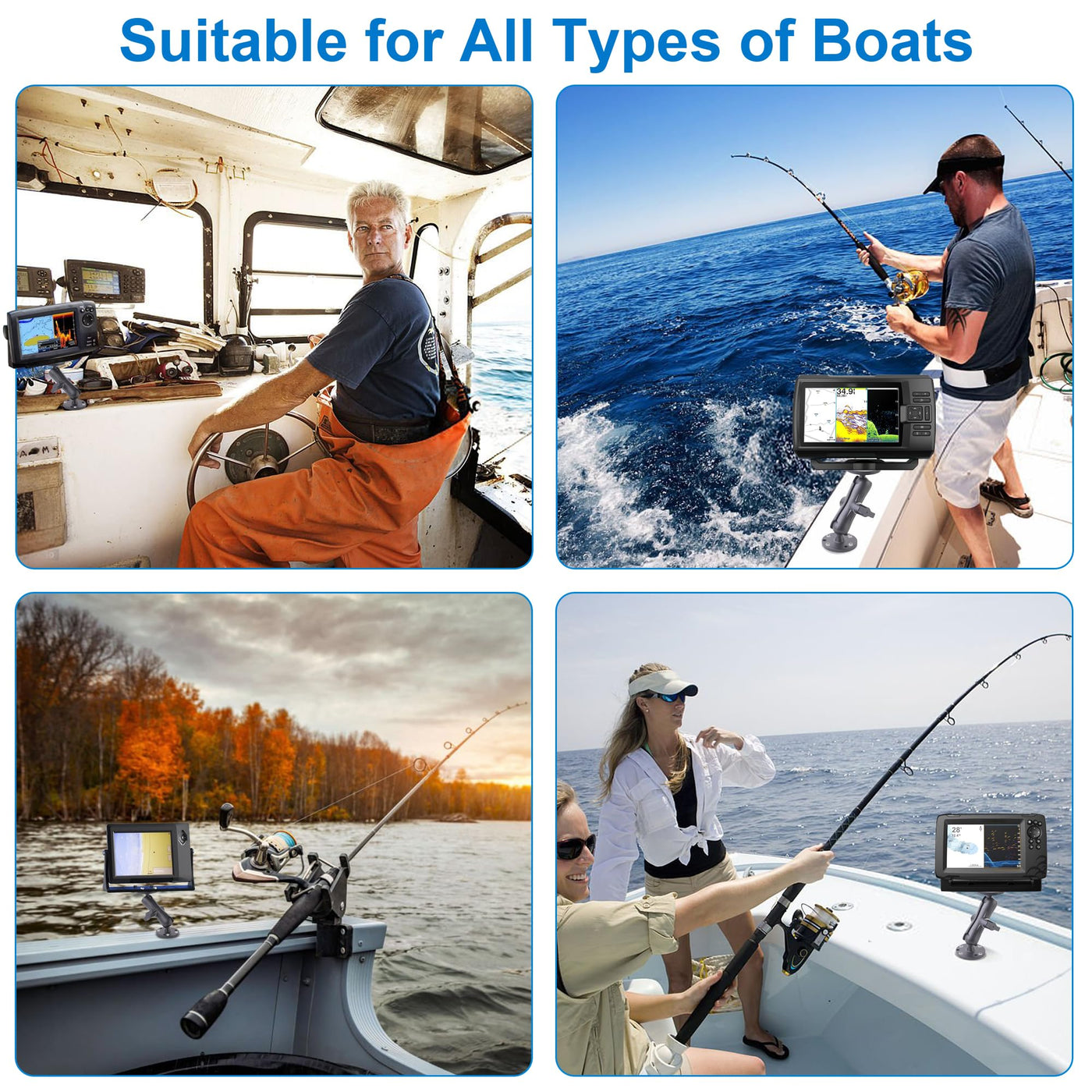Keuvirya Aluminum Fish Finder Mount With 1'' B Size Ball, 360 Rotation Depth Finder Mount Bracket For Boats With Double Amps Rou