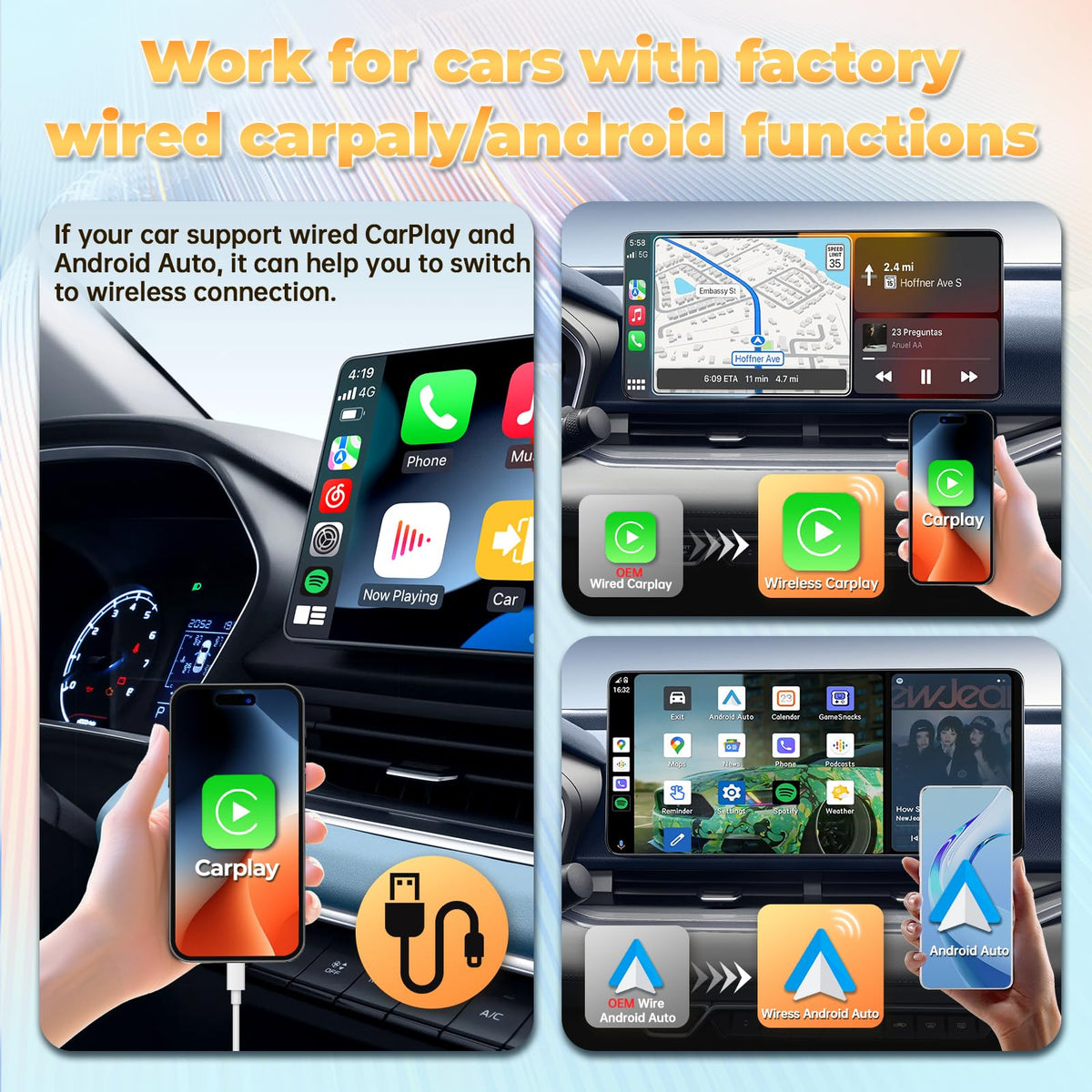Lasertail Wireless Carplay Adapter Ai Box For Oem Wired Carplay/Android Auto To Wireless Connection Plug And Play Dongle Magic B